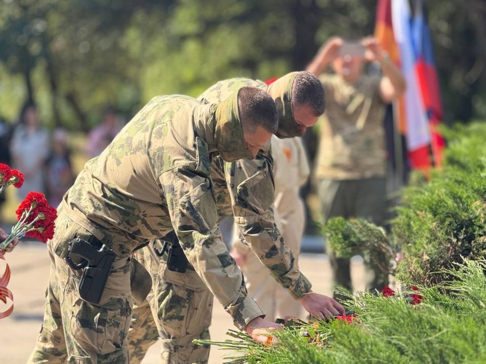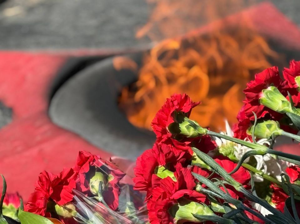В завершении митинга почтили память погибших защитников Родины минутой молчания и возложили цветы к Монументу Славы.