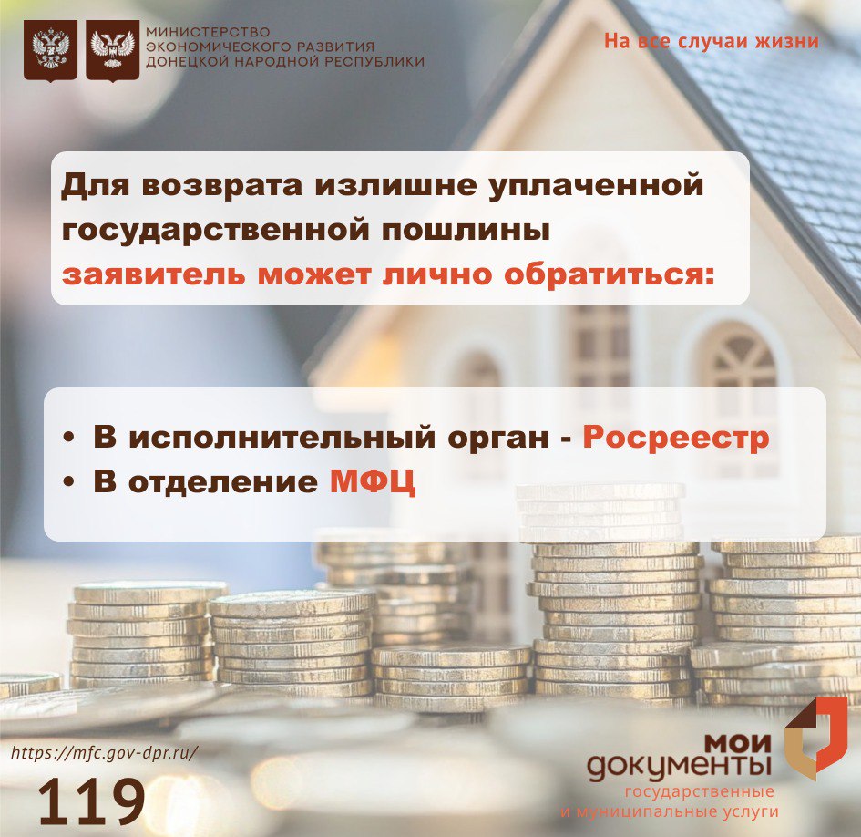 Как вернуть излишне уплаченную госпошлину при регистрации недвижимости