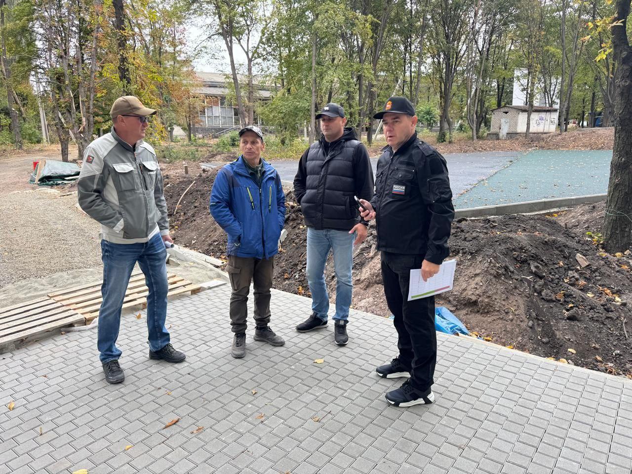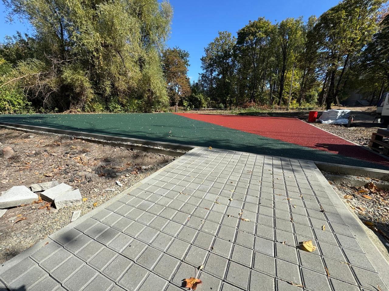 — игровые зоны для детей, где уже уложено безопасное резиновое покрытие. В ближайшее время здесь появятся новые тренажеры и малые архитектурные формы;