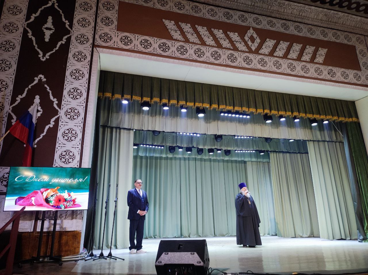 С теплыми поздравлениями к педагогам обратились заместитель главы администрации городского округа Докучаевск Юлия Хижняк и руководитель рабочей группы шеф-региона Якутии Сергей Киров. Они отметили важность труда учителей, их преданность делу и ту огромную роль, которую они играют в формировании будущего нашей страны. Также поздравил учителей настоятель Докучаевского Свято – Владимирского храма, протоиерей Никита Панасюк.