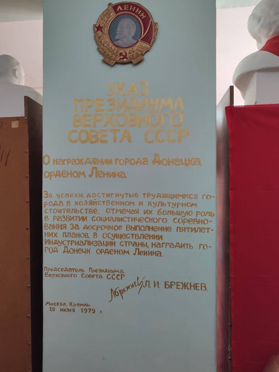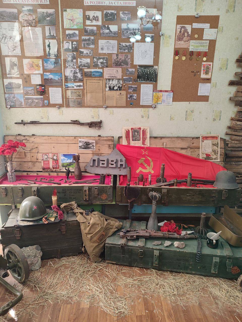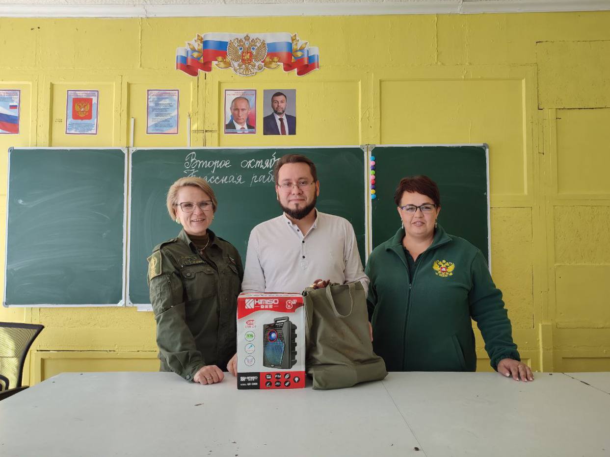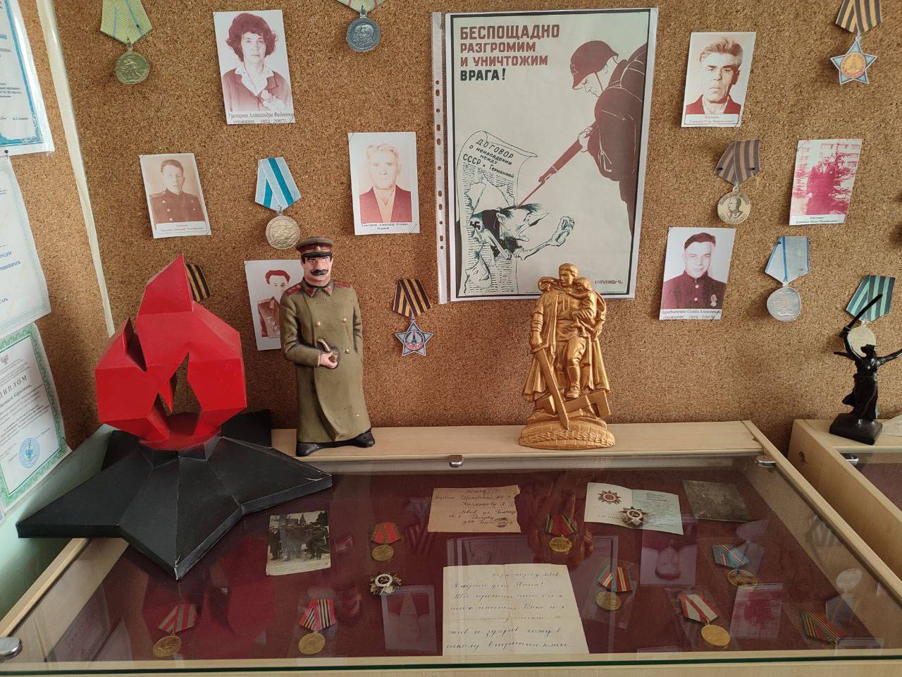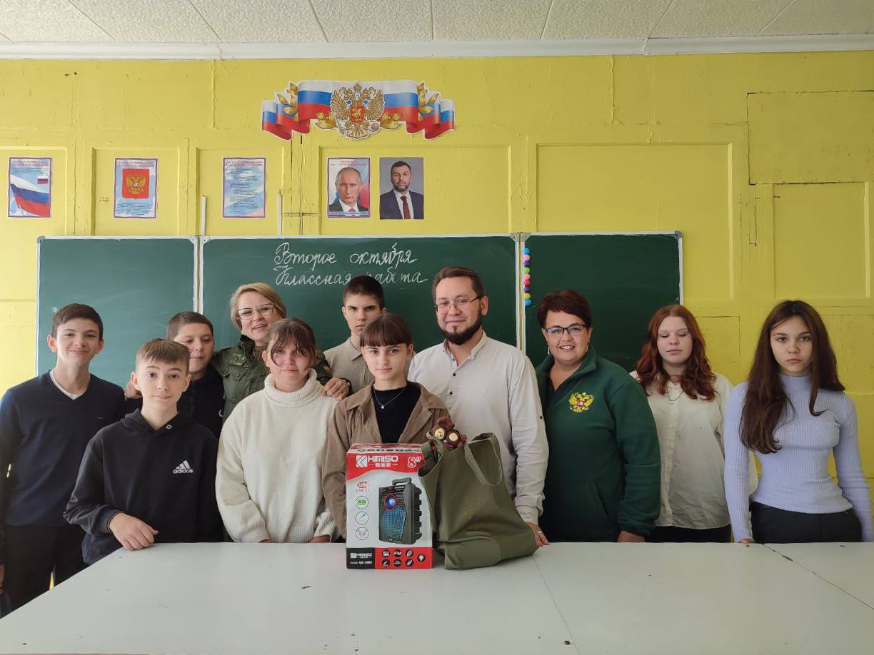 Вручили Алексею Алексеевичу колонку и гостинцы от Комитета семей воинов Отечества ДНР. В свою очередь, Алексей провел нам экскурсию в историко-краеведческом музее «Память поколений», который находится непосредственно в здании школы.