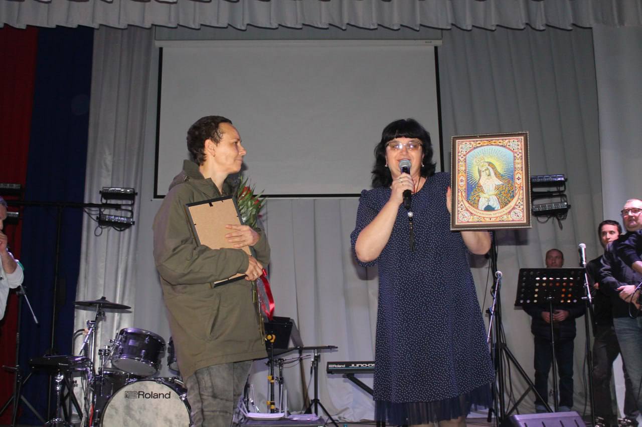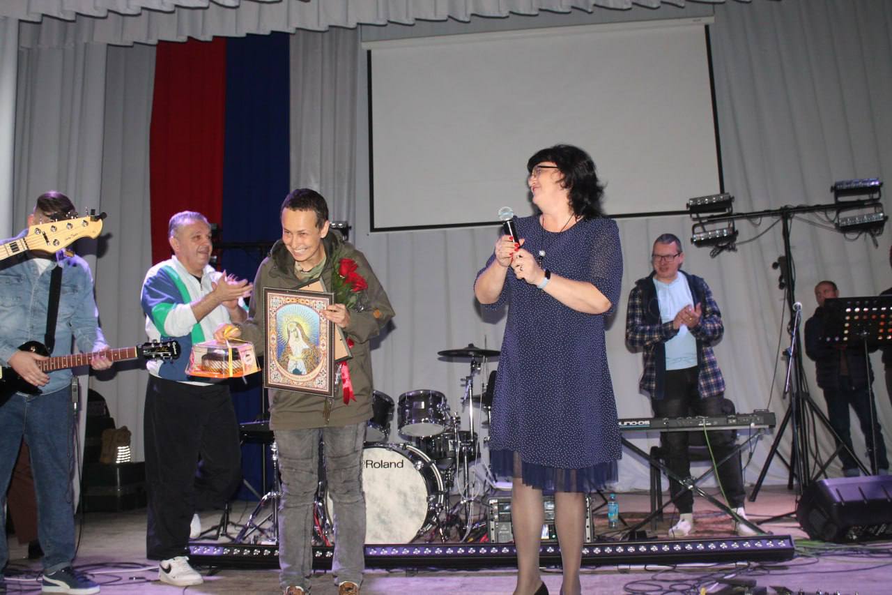 От имени главы Мангушского муниципального округа Бориса Тримы и всех жителей Наталья Тосхопаран, глава Першотравневой администрации, поблагодарила артистку и музыкантов за незабываемый вечер, вручив благодарность за высокое исполнительское мастерство, профессионализм, сохранение традиций песенного творчества, патриотизм и за прекрасный подарок, преподнесенный жителям округа. Также в дар была преподнесена икона Божьей Матери как символ заступничества и благодарности.