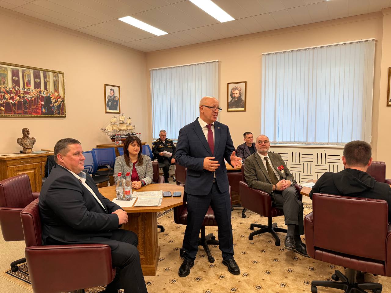Начальник филиала Нахимовского училища Сергей Екимов поблагодарил участников Попечительского совета за предоставленную гуманитарную помощь для оснащения училища и содействие в решении вопросов.
