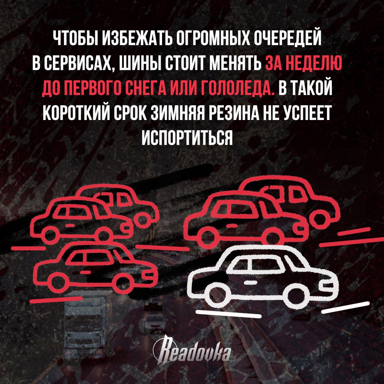 В карточках смотрим советы и рекомендации — когда стоит менять резину, как избежать очередей в сервисе и за что можно получить штраф.