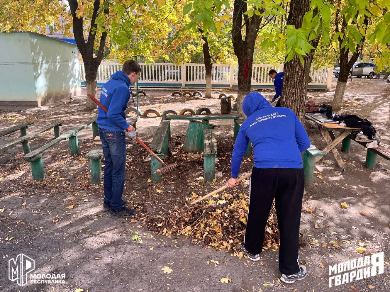 Активисты Докучаевского штаба «Молодой Гвардии Единой России» организовали субботник во дворах жилых домов в рамках акции «1000 Добрых дел» Ко Дню Рождения президента Российской Федерации Владимира Владимировича Путина.