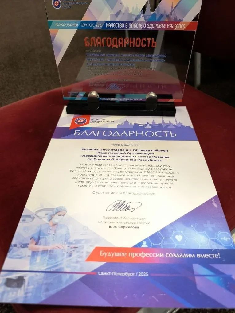 Всё сестринское сообщество Донецкой Народной Республики отмечено Благодарностью РАМС за весомый вклад в выполнение стратегических задач Ассоциации.