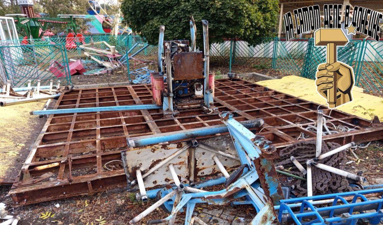 Последствия вчерашнего пожара в донецком парке культуры и отдыха имени Щербакова