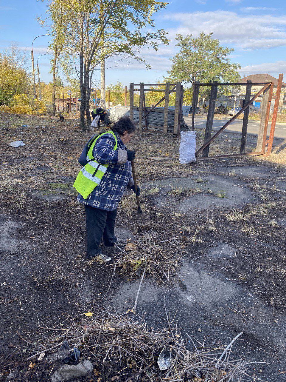 Уборка мусора, удаление и погрузка самосеянных деревьев и веток с территории автовокзала в г. Ясиноватая