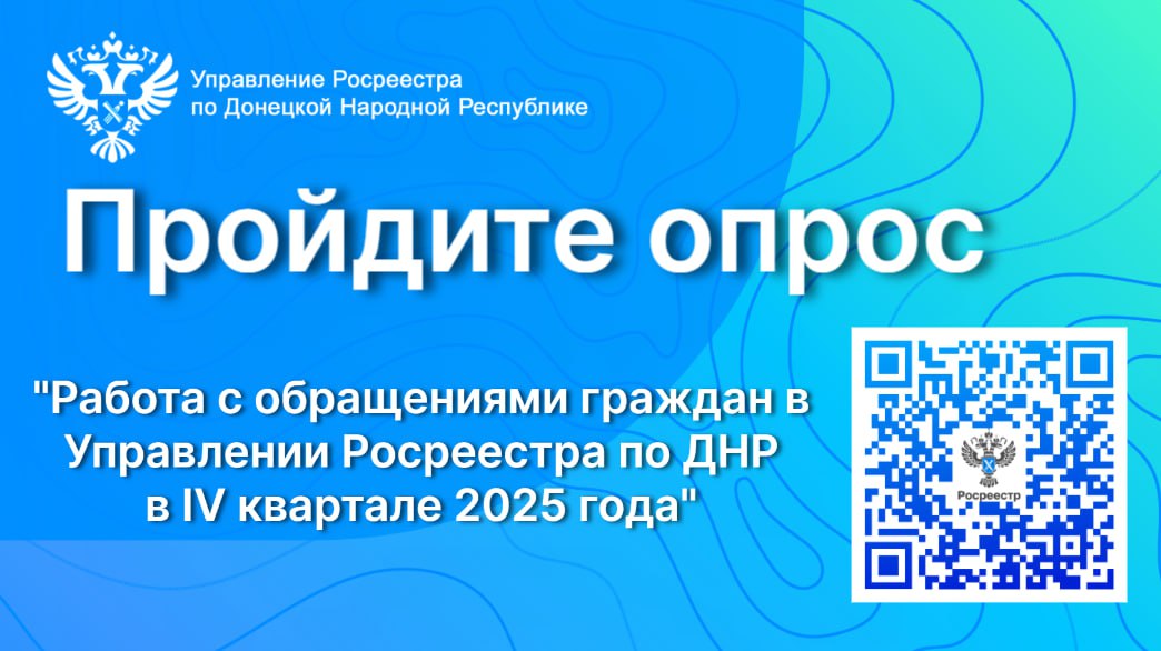 В целях повышения качества предоставляемых государственных услуг и функций Управление Росреестра по Донецкой Народной Республике приглашает принять участие в опросе.