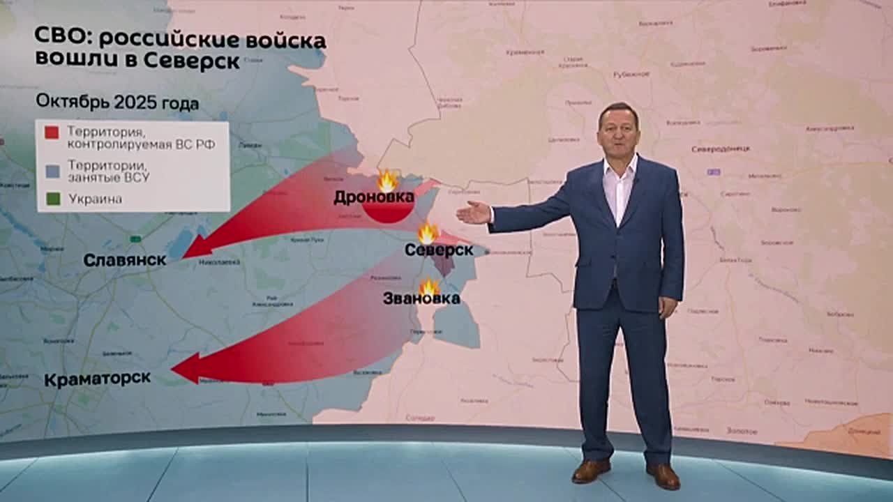 Российские войска вошли в город Северск, расположенный в 25 км от Славянска, и впервые применили FPV-дроны-камикадзе на оптоволокне в Краматорске, заявил @SputnikLive военный обозреватель Александр Хроленко.