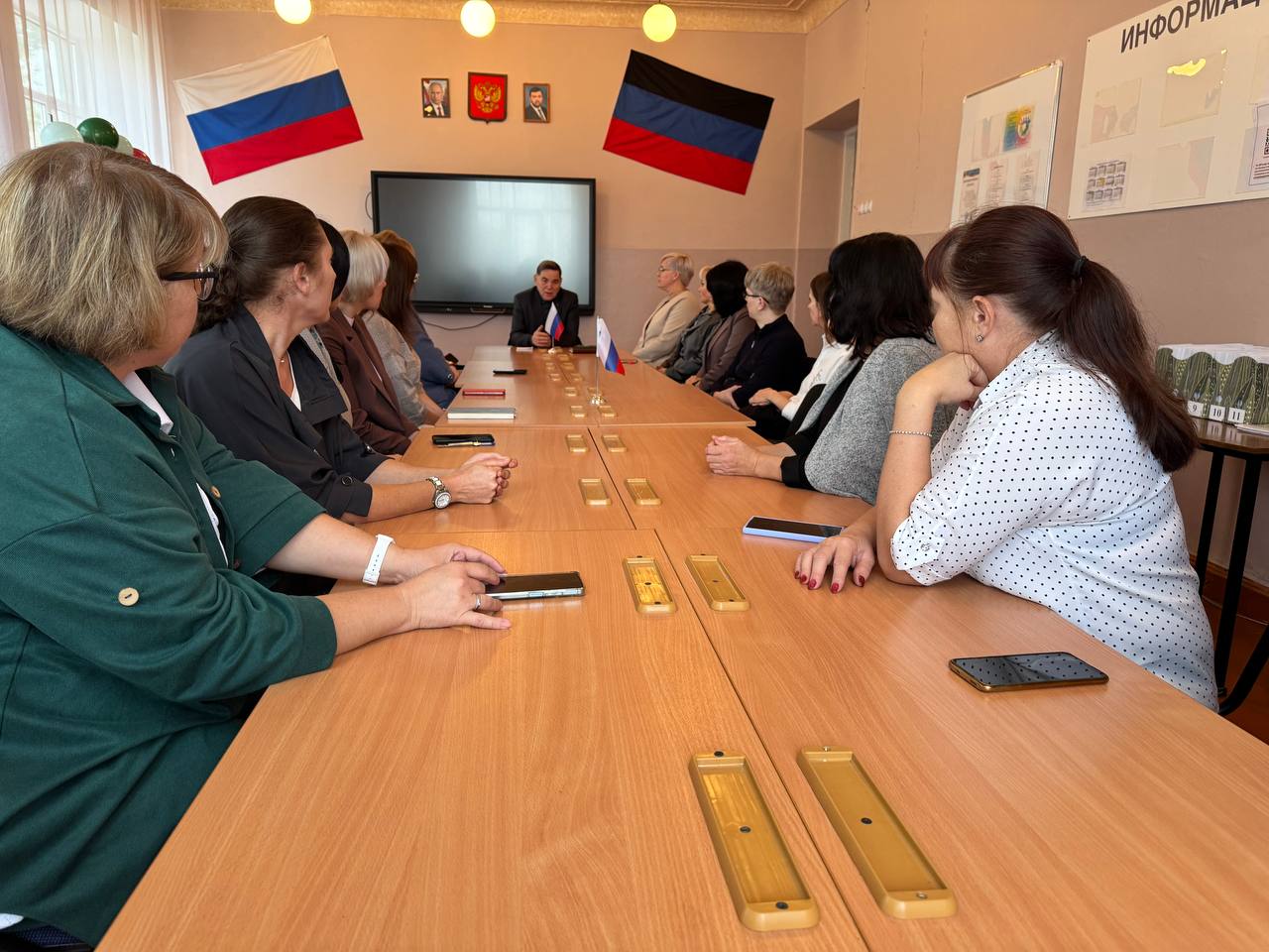 Сегодня первый заместитель главы администрации городского округа Донецк Виктор Моисеенков провел рабочую встречу с педагогическим коллективом школы №128. Основной темой диалога стали масштабные работы, направленные на улучшение качества жизни в Донецкой Народной Республике.