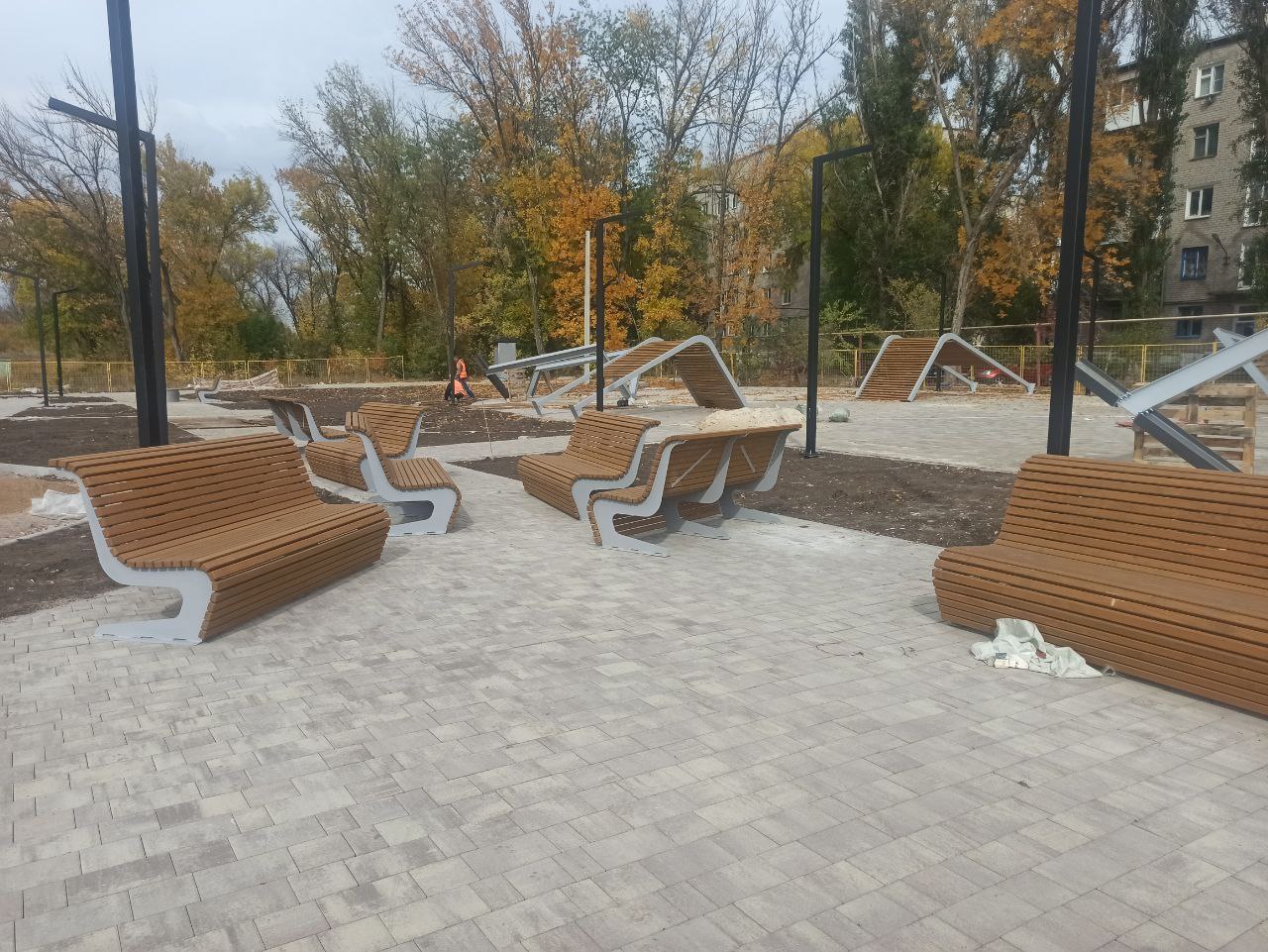 Сейчас здесь кипит работа: укладывается поребрик, монтируется плитка, устанавливаются опоры освещения, собираются и монтируются малые архитектурные формы. Уже появилась стена для будущих граффити, что обещает добавить уникальности этому месту. В ближайших планах – устройство бесшовного резинового покрытия и высадка зеленых насаждений, которые сделают территорию еще более привлекательной и комфортной.