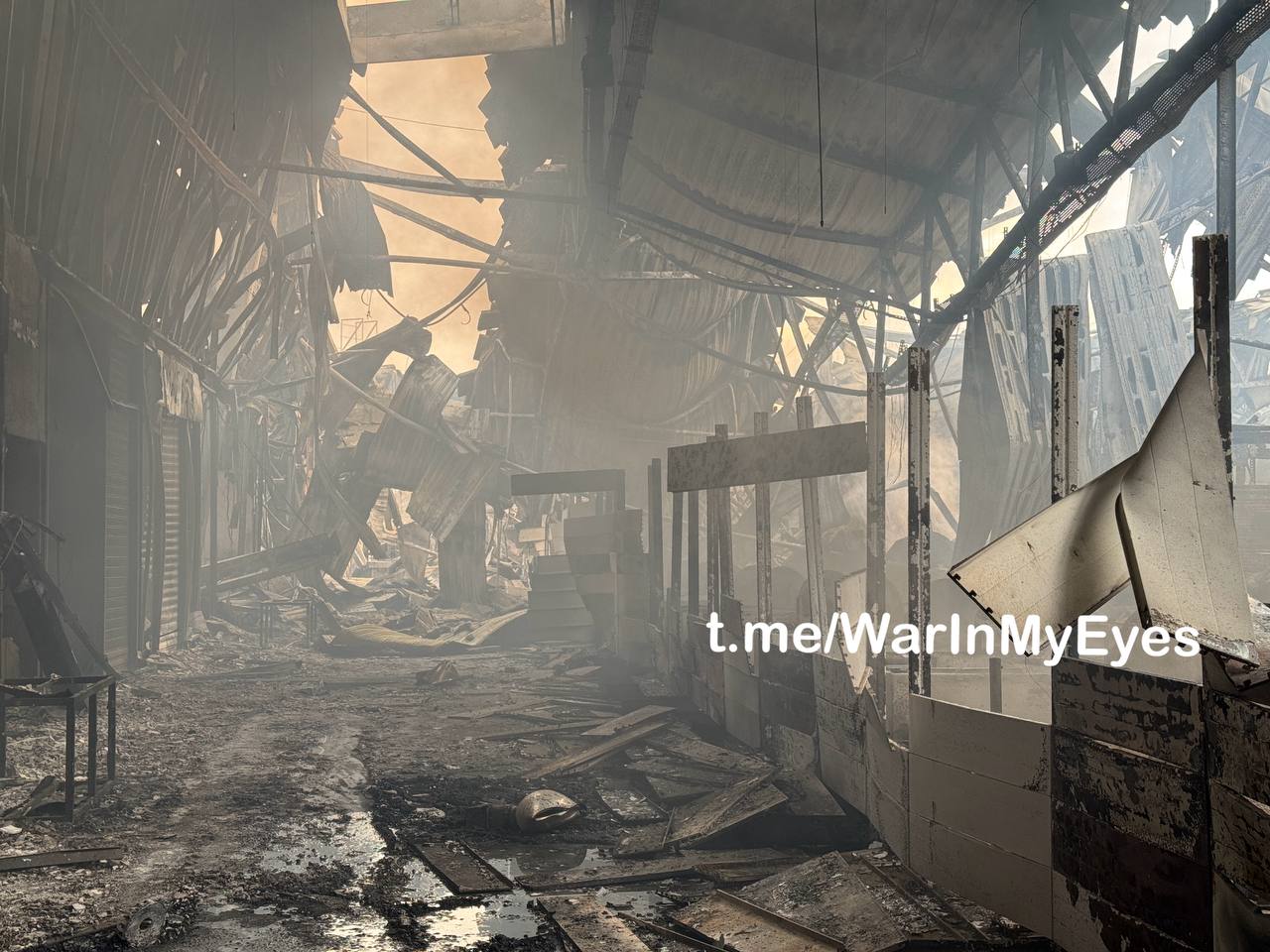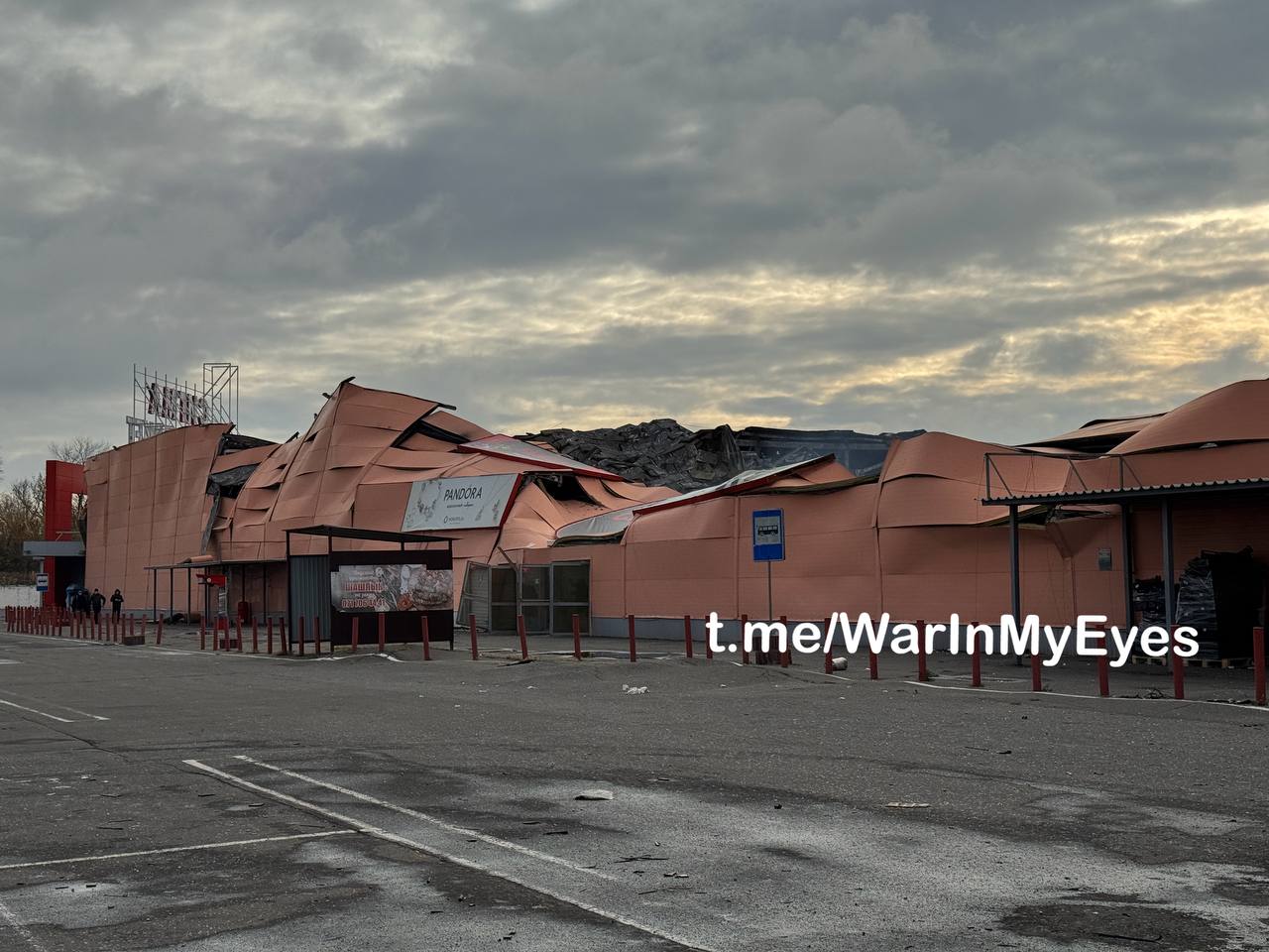 После ночного удара дронов от огромного здания не осталось практически ничего... торговую площадку буквально испепелило.