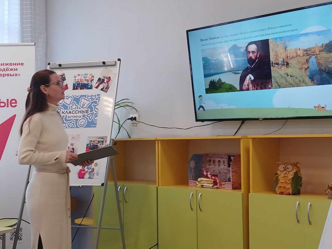 Она рассказала ребятам о своих увлечениях, о том, что повлияло на выбор профессии учителя. После познавательной беседы Ксения Анатолиевна провела мастер-класс «Рисуем осень». Ребята с увлечением рисовали, стараясь передать красоту осенней природы. В завершение мероприятия ребята подарили Ксении Анатолиевне свои рисунки, а директор школы Полякова Я.Н. вручила Благодарность за интересную встречу.