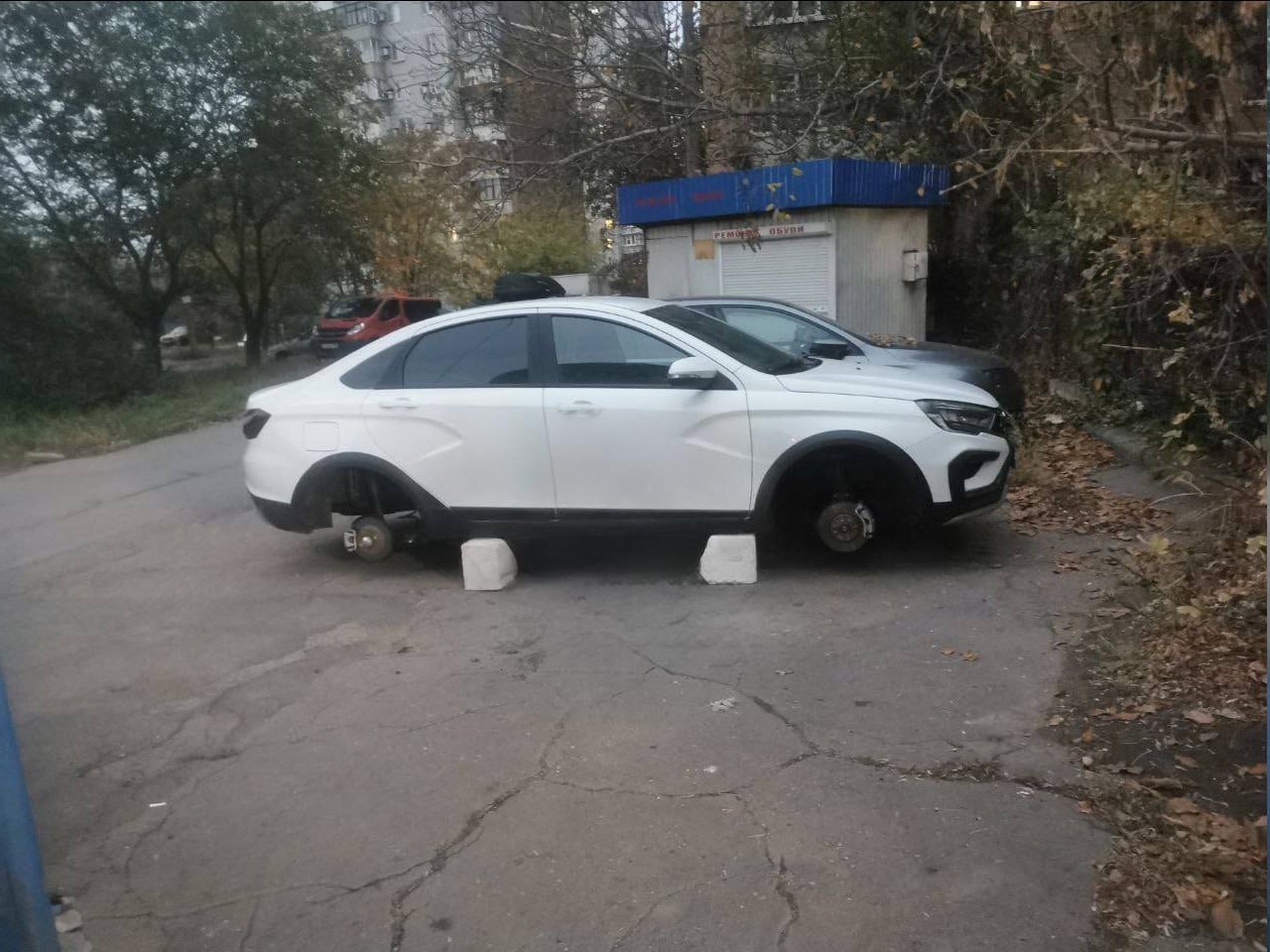 Автомобиль на кирпичах заметили сегодня улице Капитана Ратникова. Видел ли уже владелец авто потерю, не ясно.