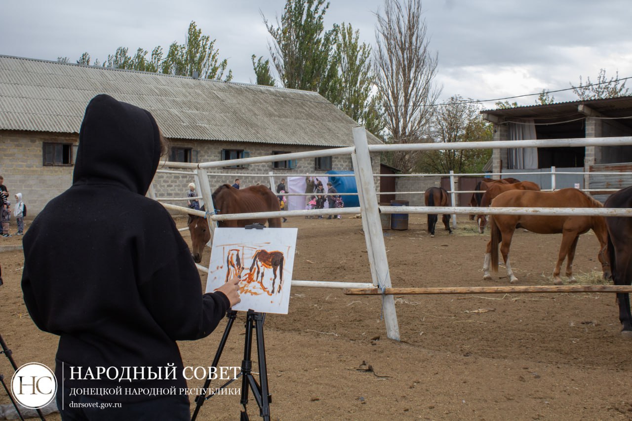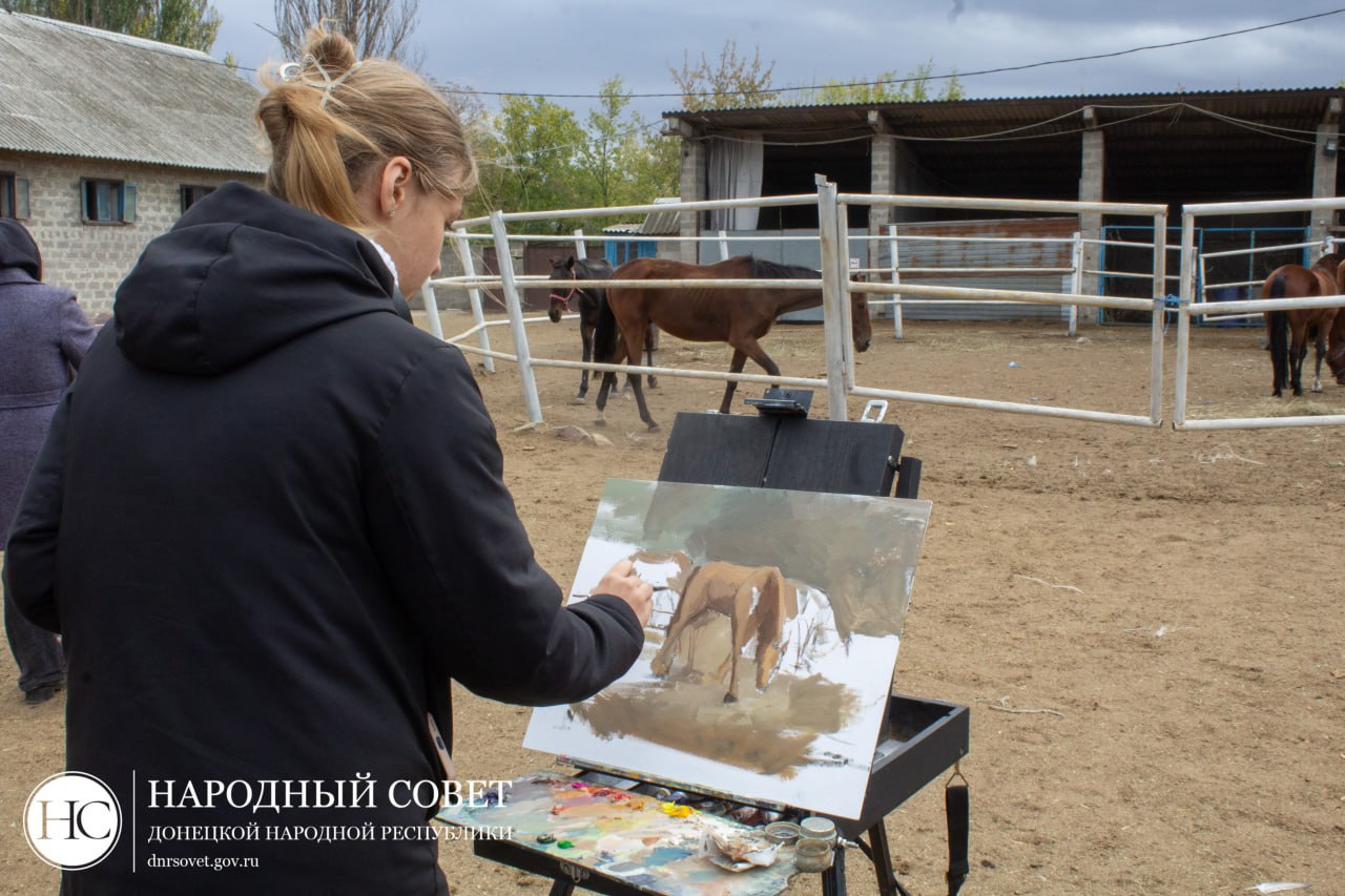 Кроме того, 14 студентов Донецкого художественного колледжа устроили «пленэр», перенося на холсты образы лошадей.