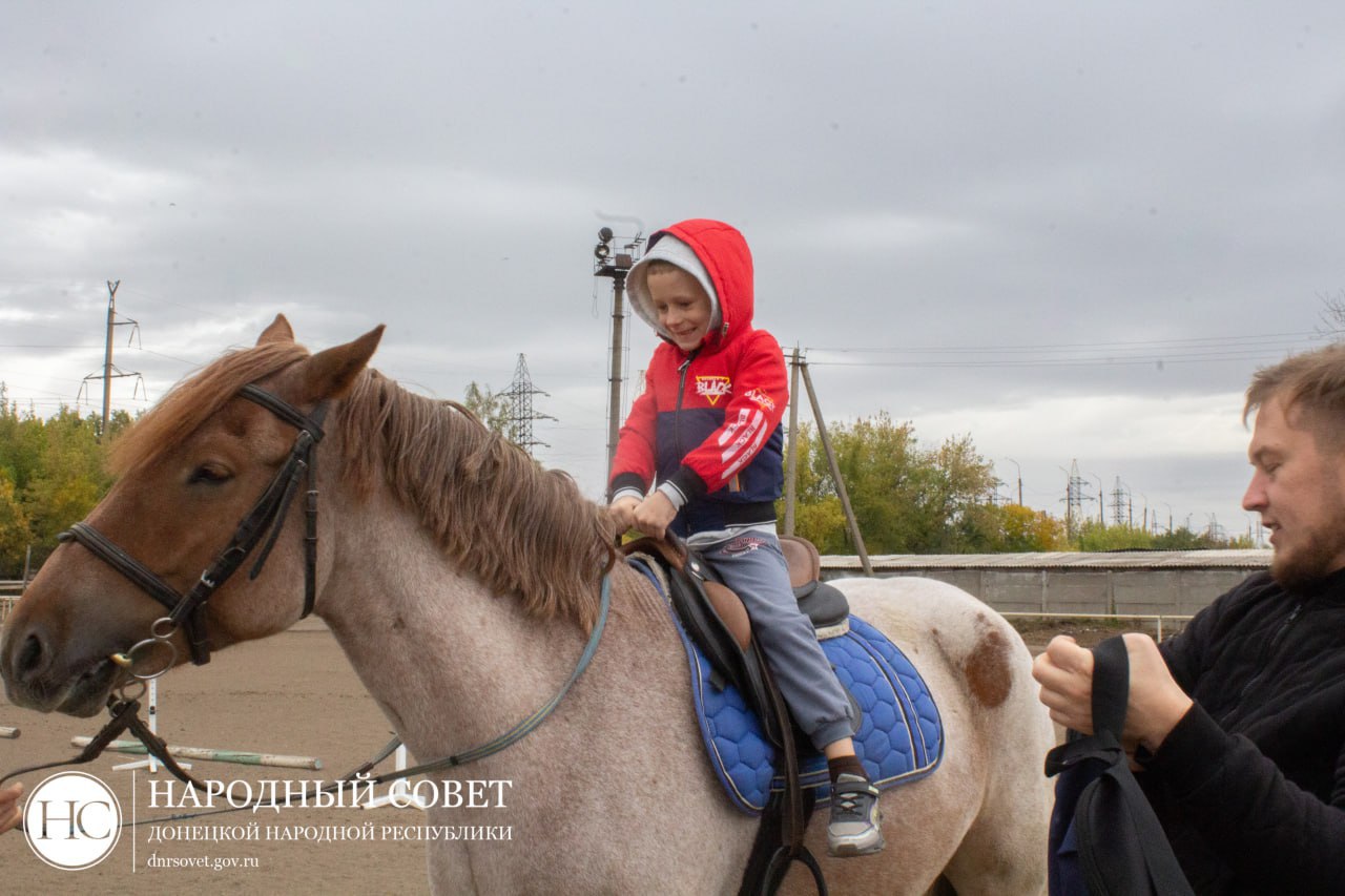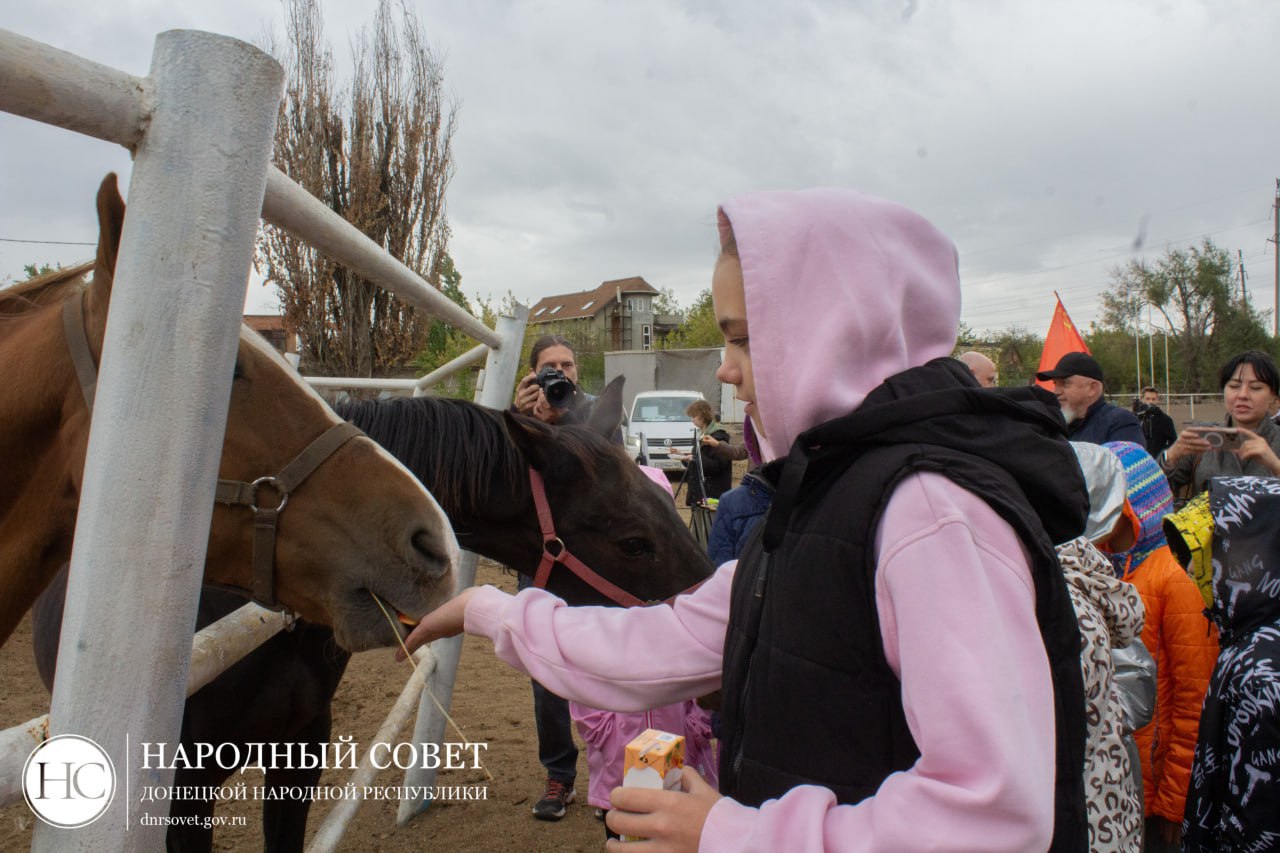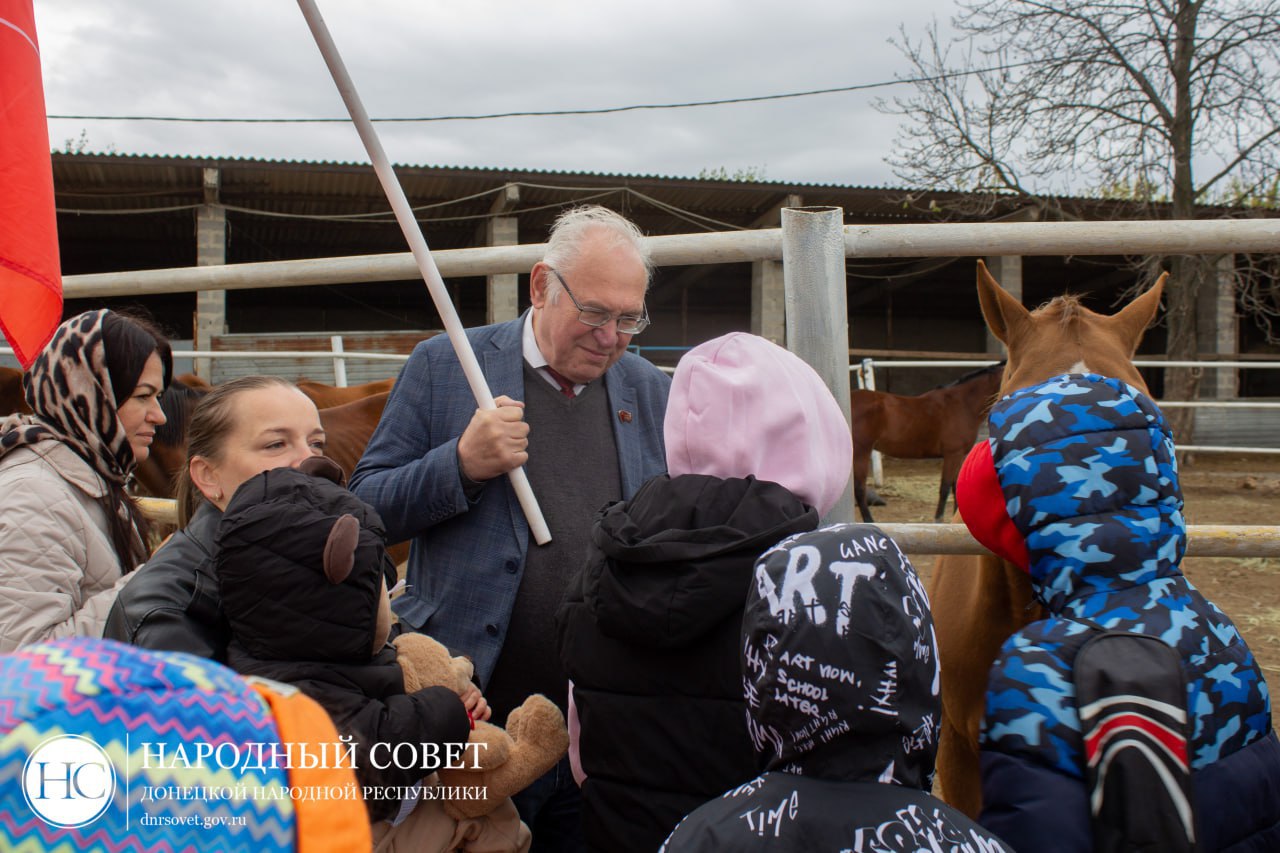 Депутат Государственной Думы Казбек Тайсаев, заместитель Председателя Народного Совета ДНР Николай Сытов, руководитель фракции КПРФ в Народном Совете ДНР Борис Литвинов, депутаты Народного Совета ДНР и Председатель Молодежного Парламента ДНР Сергей Журавлев провели праздничное мероприятие для детей в конном клубе «Гран-При».