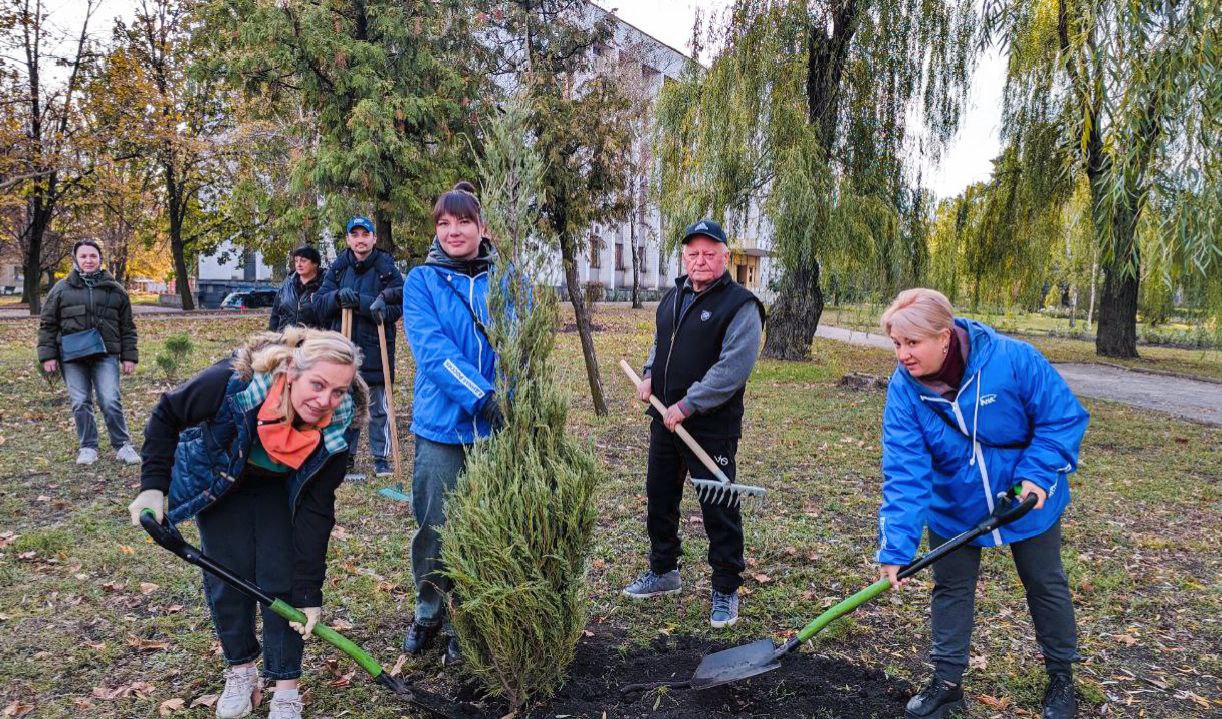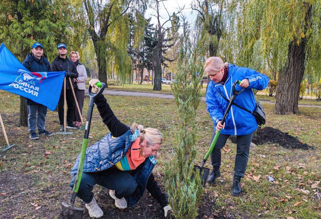 В рамках субботника участники провели работы по благоустройству территории на площади Петровского: осуществили уборку опавшей листвы, веток, случайного мусора и высадили туи.