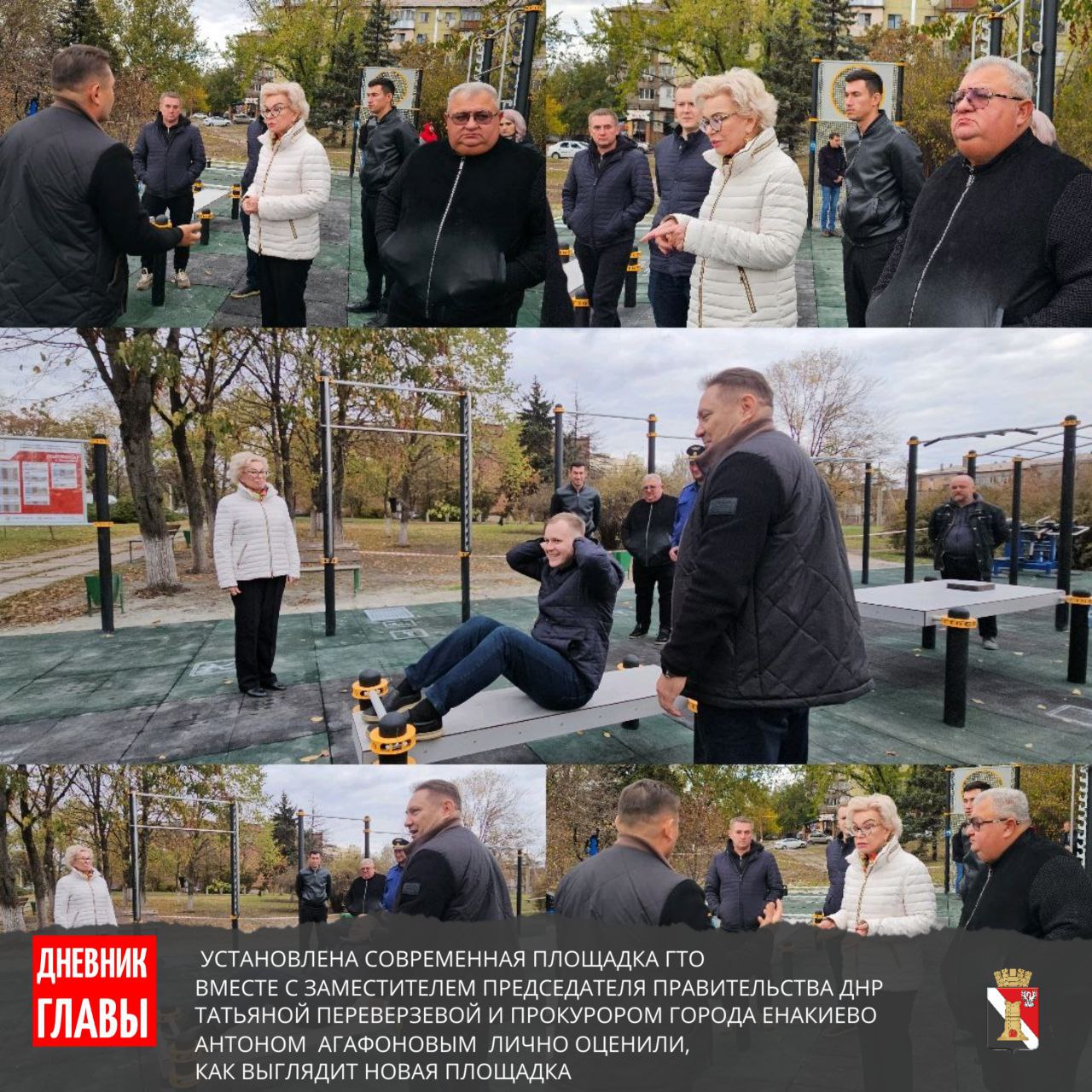 В Енакиево установлена современная площадка для сдачи нормативов ГТО. Совместно с заместителем председателя правительства ДНР Татьяной Переверзевой и прокурором города Антоном Агафоновым лично проверили, как выглядит новая площадка.