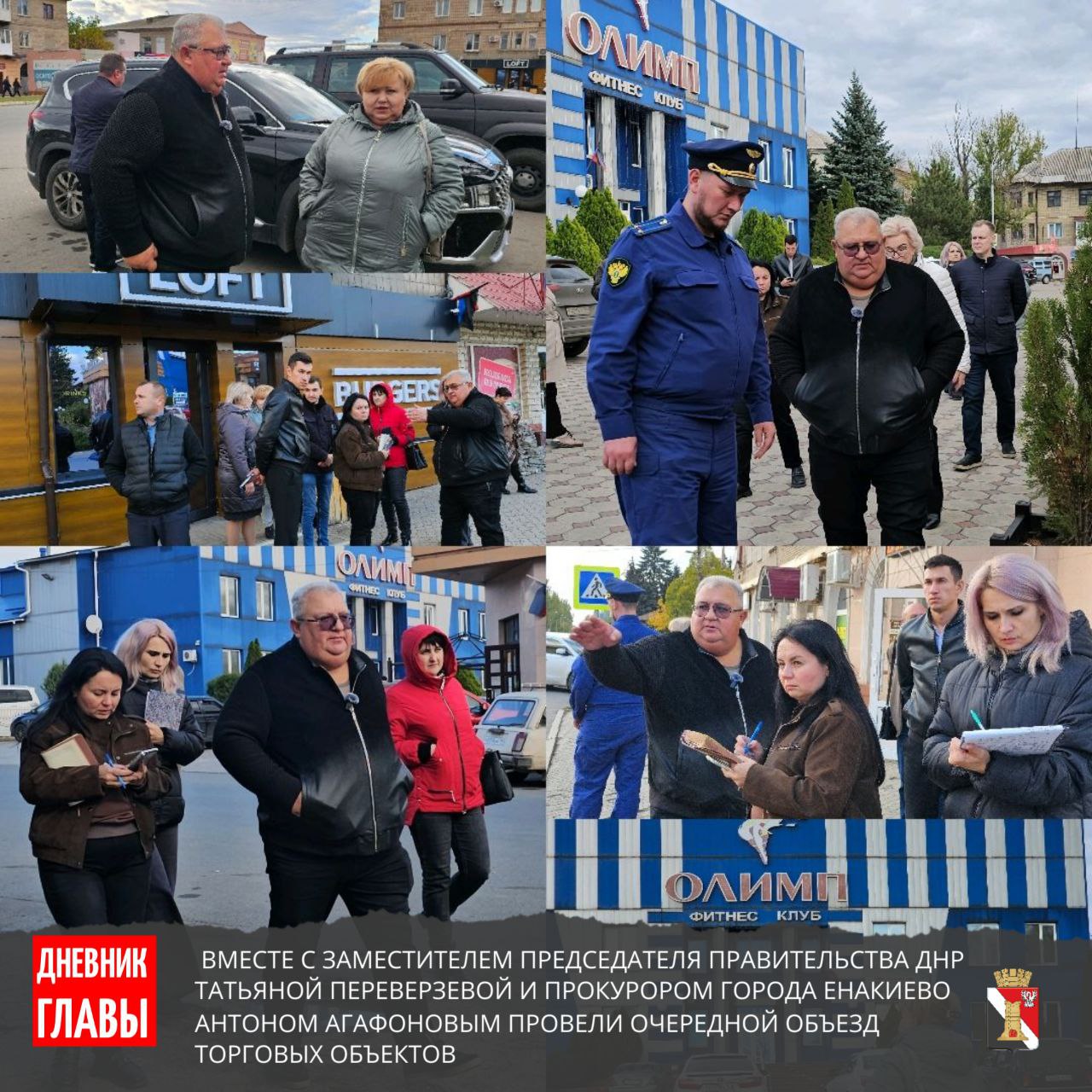 Организовали совместный объезд торговых объектов города совместно с заместителем председателя правительства ДНР Татьяной Переверзевой и прокурором города Антоном Агафоновым.
