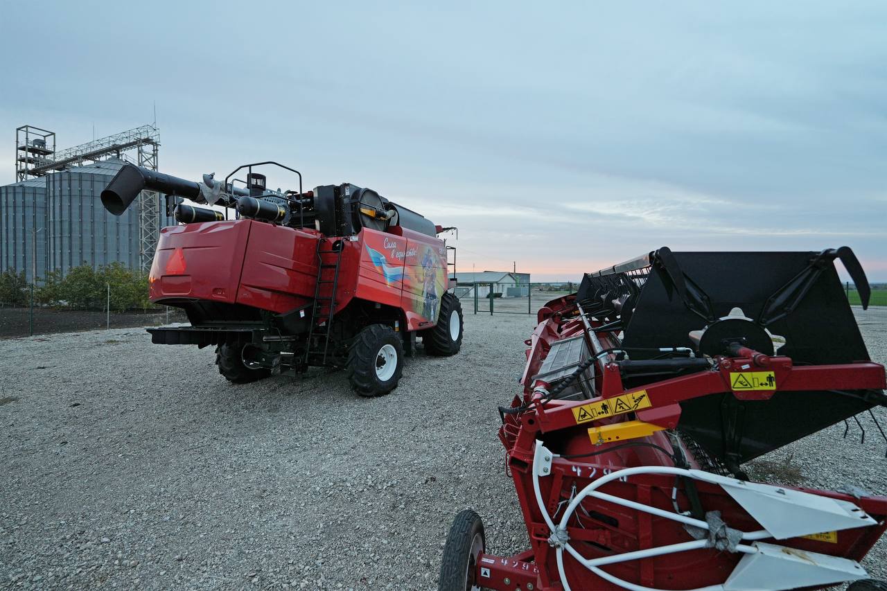 На одном из зерноперерабатывающих предприятий, расположенном в поселке Володарское под Мариуполем, корреспондент «КП Донецк» заметил патриотичный зерноуборочный комбайн GS12 производства «Брянсксельмаш»