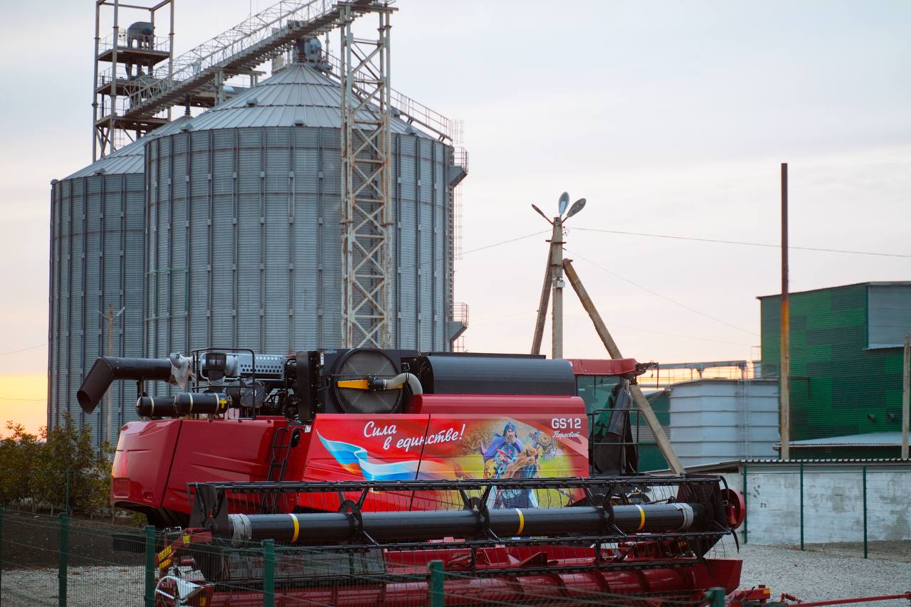 На одном из зерноперерабатывающих предприятий, расположенном в поселке Володарское под Мариуполем, корреспондент «КП Донецк» заметил патриотичный зерноуборочный комбайн GS12 производства «Брянсксельмаш». На технике нанесен рисунок с изображением русского богатыря, скачущего на коне по русскому полю, и надпись: «Сила в единстве».
