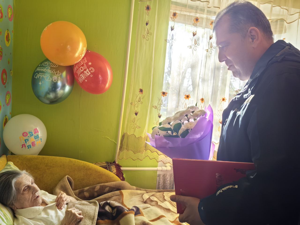 Таймураз Арсоев сердечно поздравил юбиляра с этой знаменательной датой и передал ей поздравительный адрес от главы Волновахского муниципального округа Константина Зинченко.