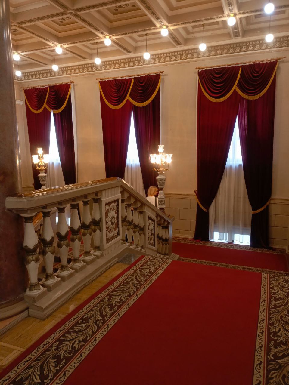 Примечательный факт: знаменитая люстра - символ «Донбасс Оперы» установлена на высоте пятиэтажного дома и весит полтонны. Внутри вставлено 50 лампочек и 12 тысяч хрусталиков.