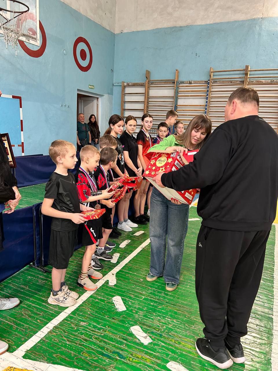 В честь этого события были вручены подарки, а директор ДЮСШ вручил спортсменам первые спортивные разряды.