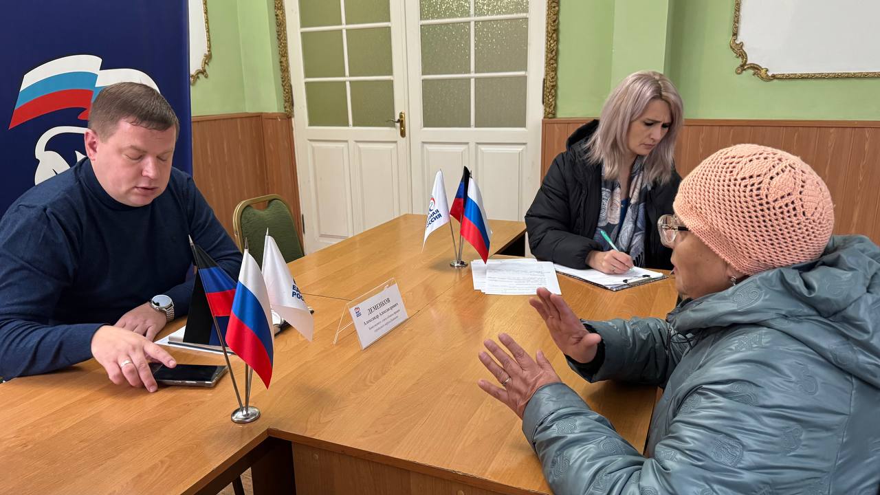 Заместитель главы администрации муниципального образования городского округа ЕнакиевоАлександр Деменков провёл личный приём гражданв общественной приемной Енакиевского местного отделения Всероссийской политической партии «Единая Россия», на котором также присутствовали члены Общественного совета муниципального образования городского округа ЕнакиевоНина Самохина и Виталий Харечко.