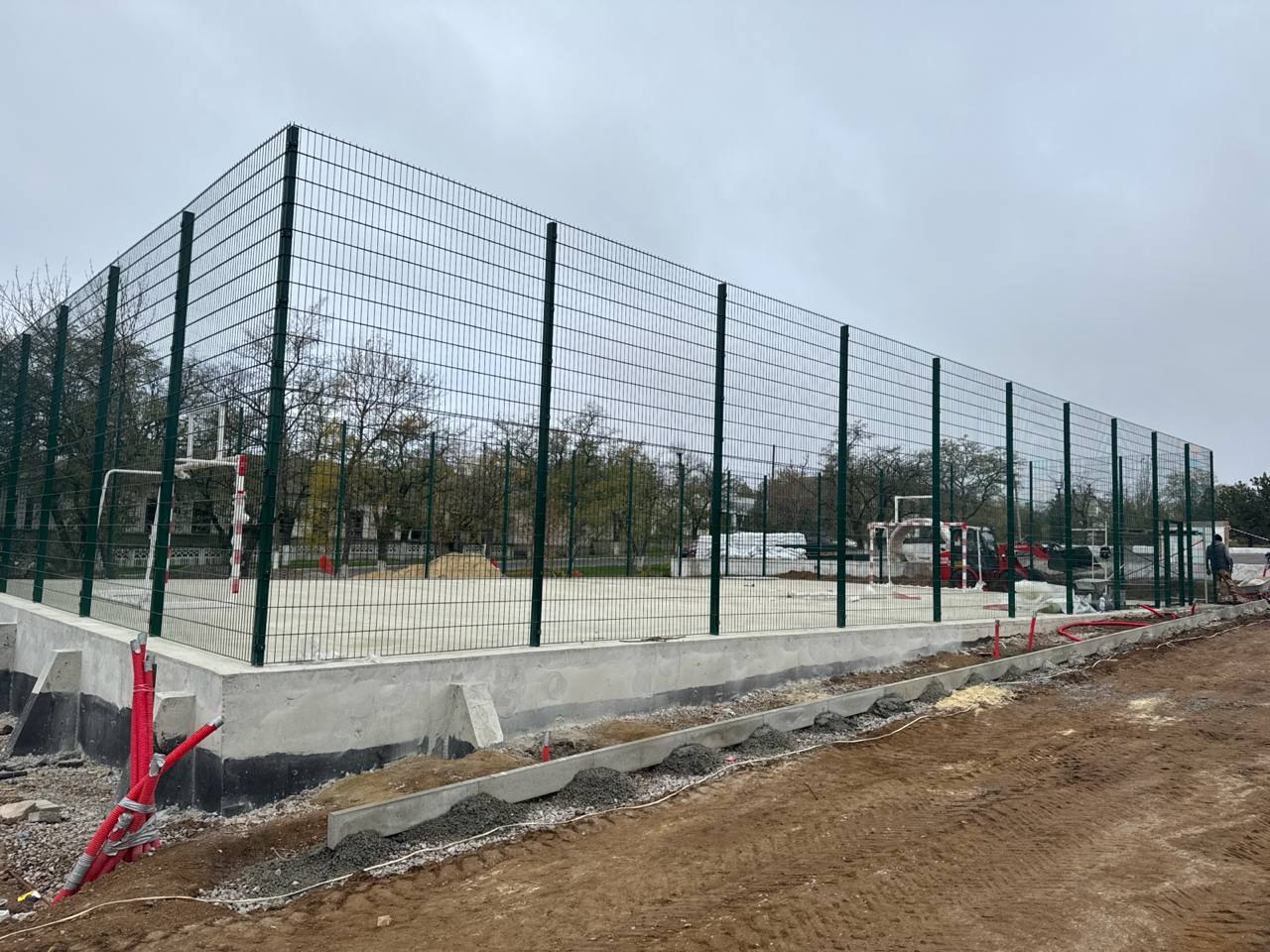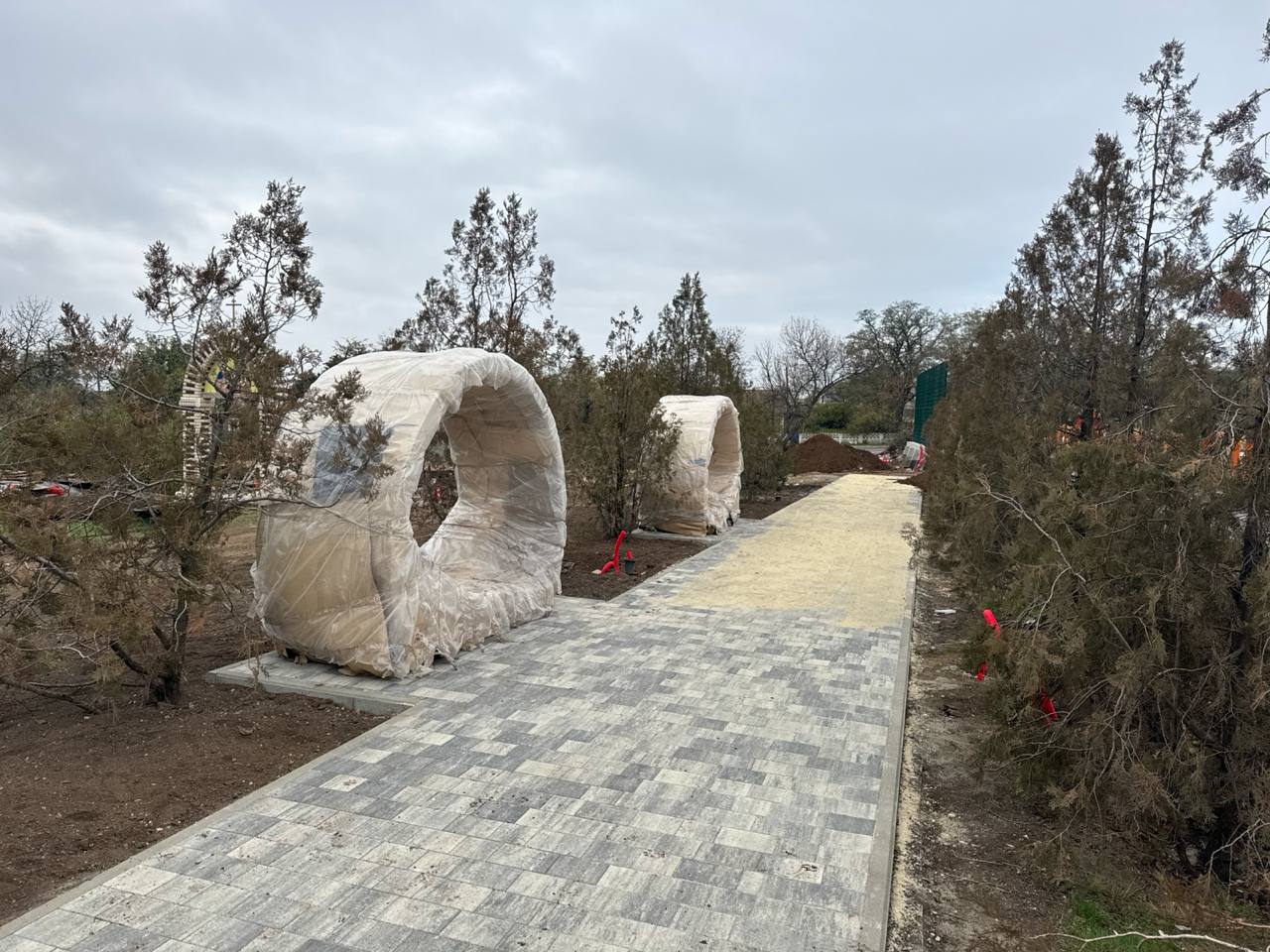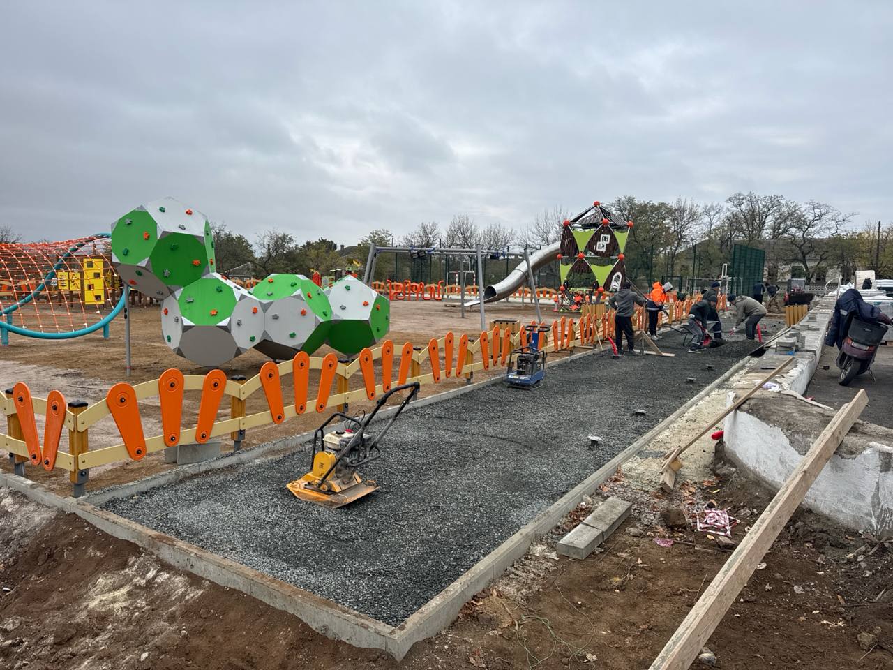 На сегодняшний день выполняются работы общественной территории, выполняются работы по укладке тротуарной плитки. Также выполняются работы по прокладке кабеля наружного освещения, осуществляется подготовка борцовского поля под заливку бетоном.