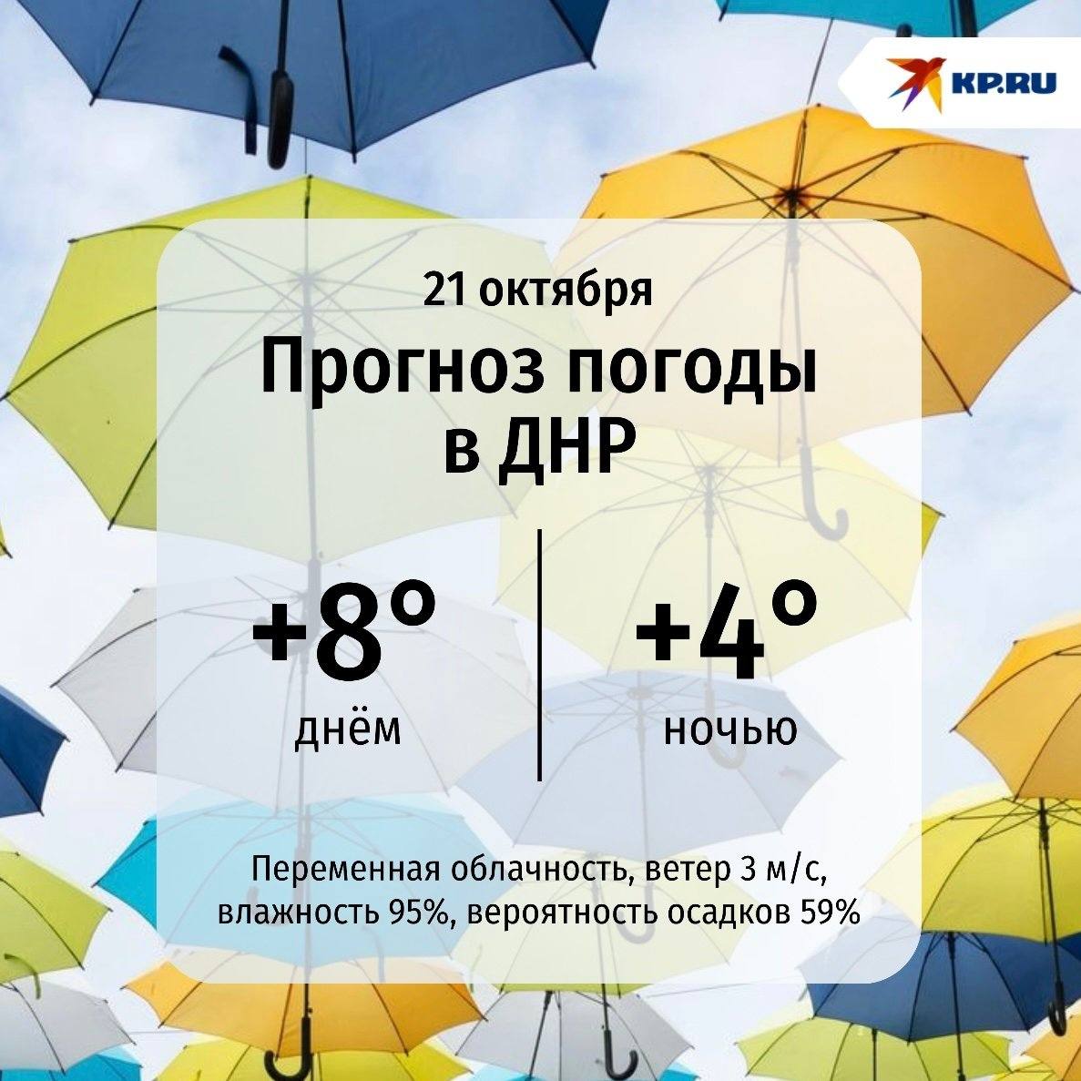 В ДНР во вторник погода будет пасмурная и зябкая. Примерно с двух до трёх часов дня ожидается небольшой дождик.