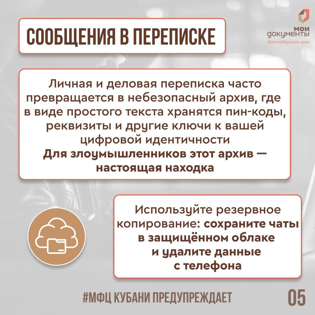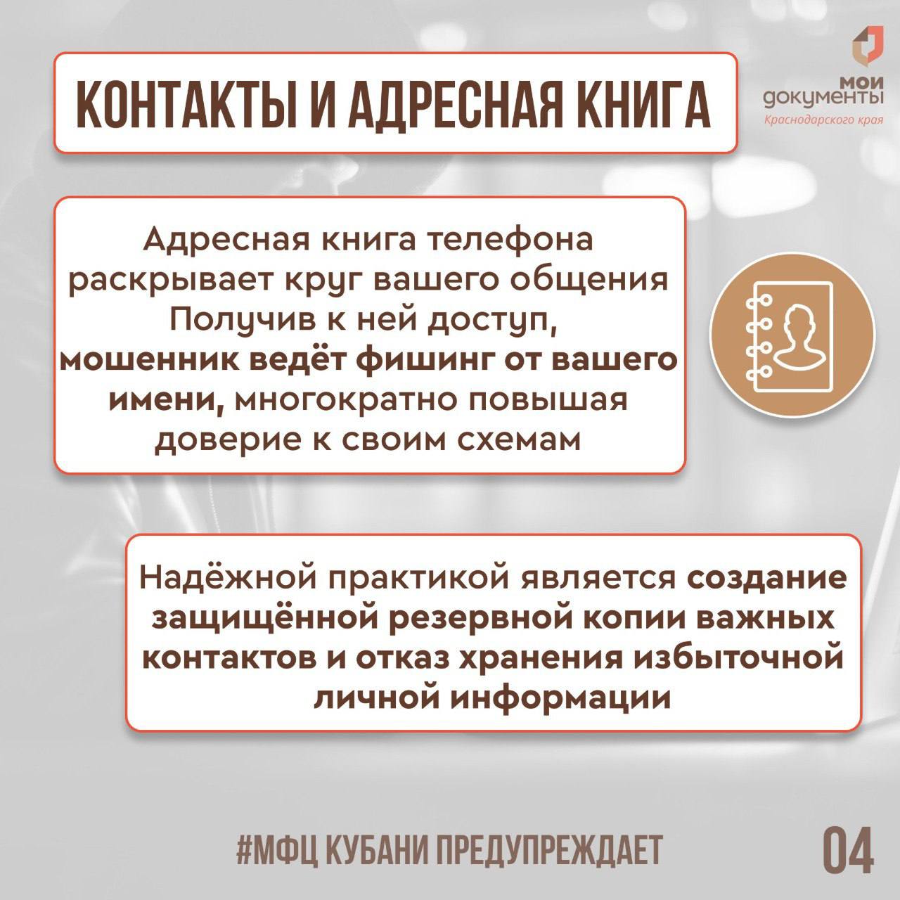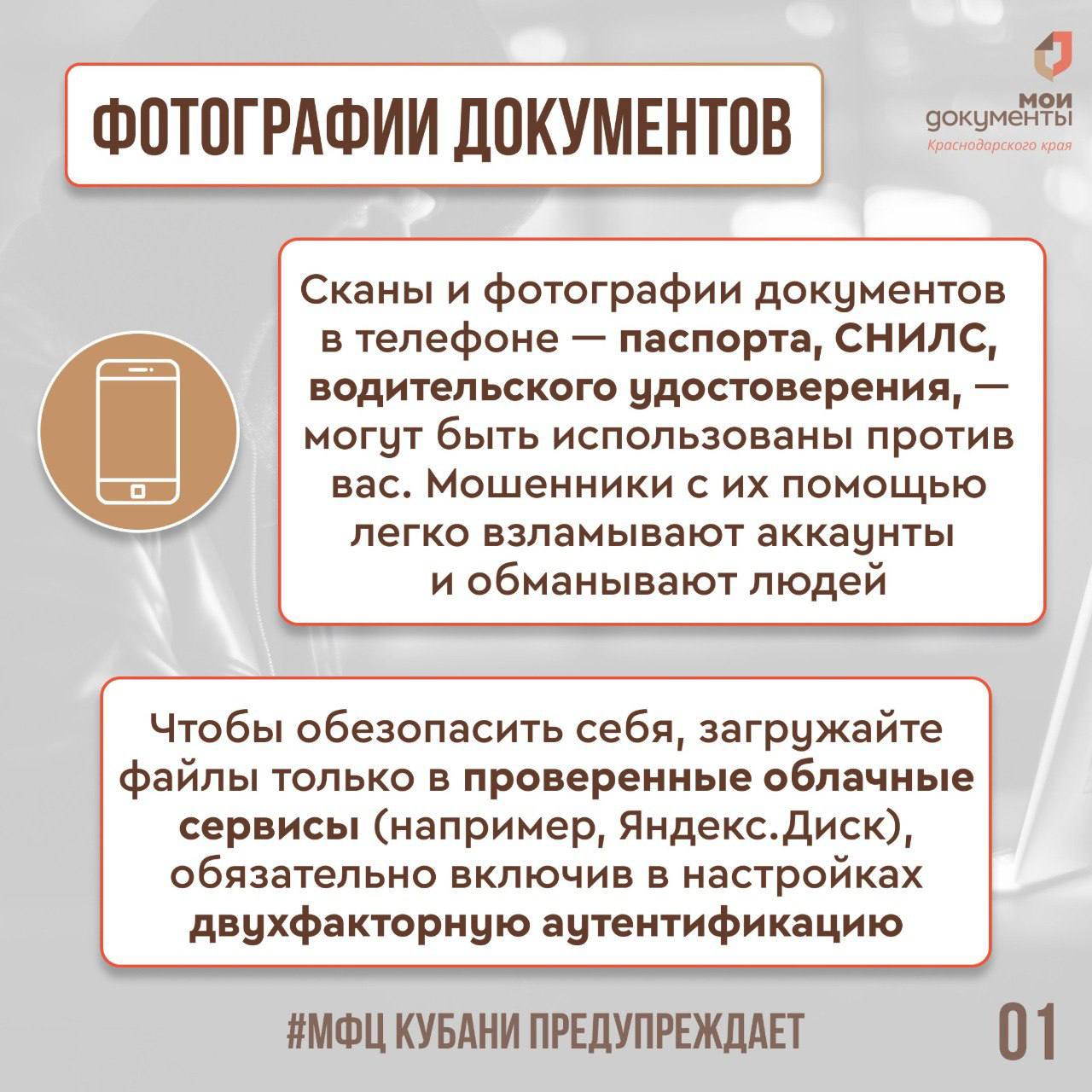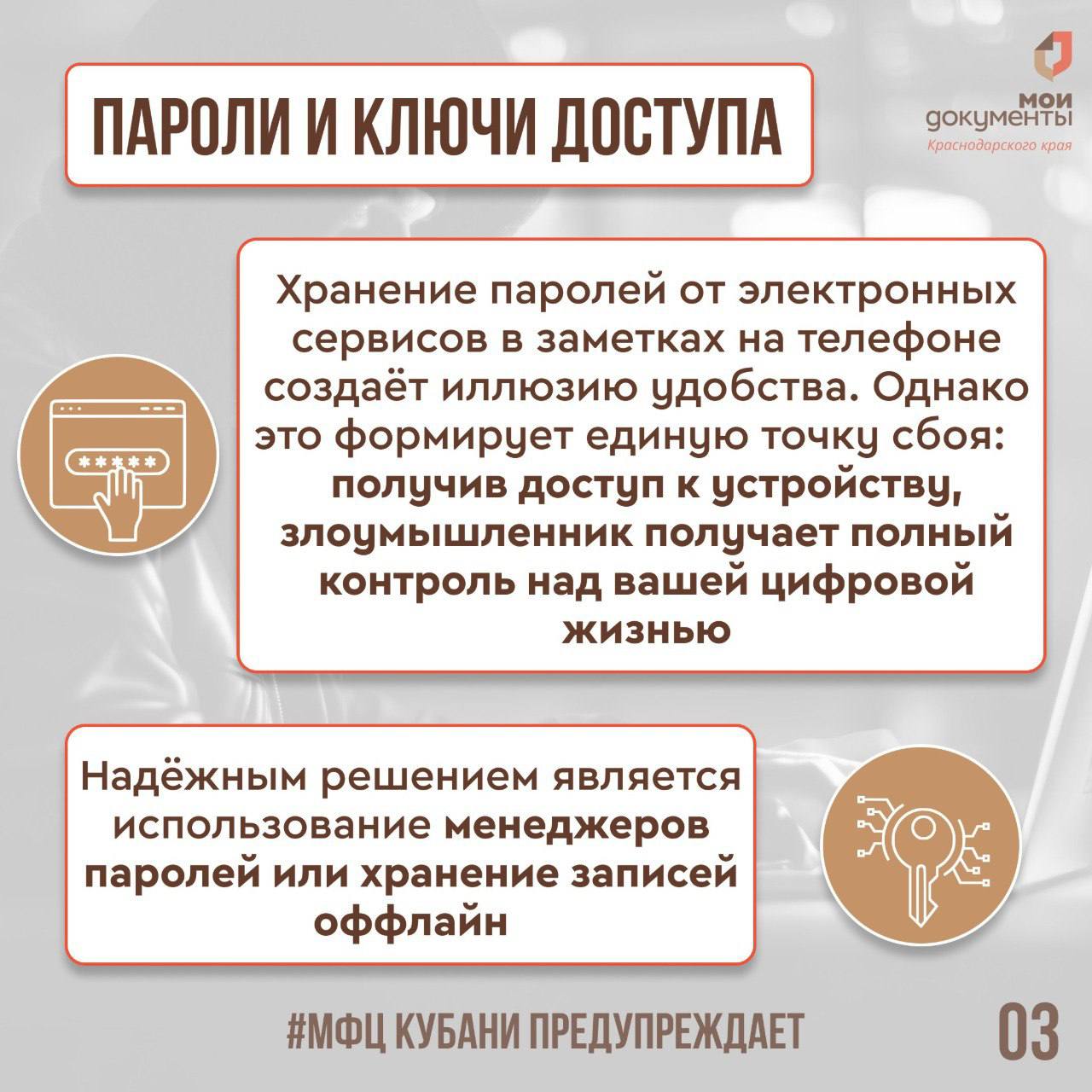 МФЦ Краснодарского края делится в карточках рекомендациями по защите от неправомерного доступа к устройству