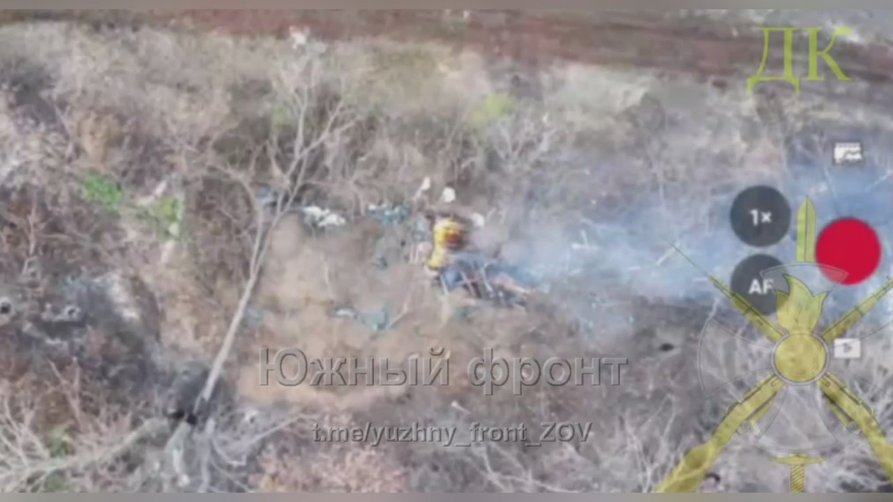 На Краматорско-Дружковском направлении воины Добровольческого корпуса "Южной" группировки точным попаданием дрона-камикадзе взорвали пункт управления БпЛА противника