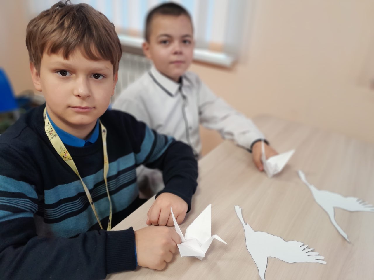Дети познакомились с историей праздника, с биографией Расула Гамзатова, узнали о судьбе японской девочки, которая и вдохновила поэта на создание этого стихотворения и о том, что в разных уголках России и других странах воздвигнута целая галерея памятников, где журавли являются символом скорби по воинам, не вернувшимся с войны.