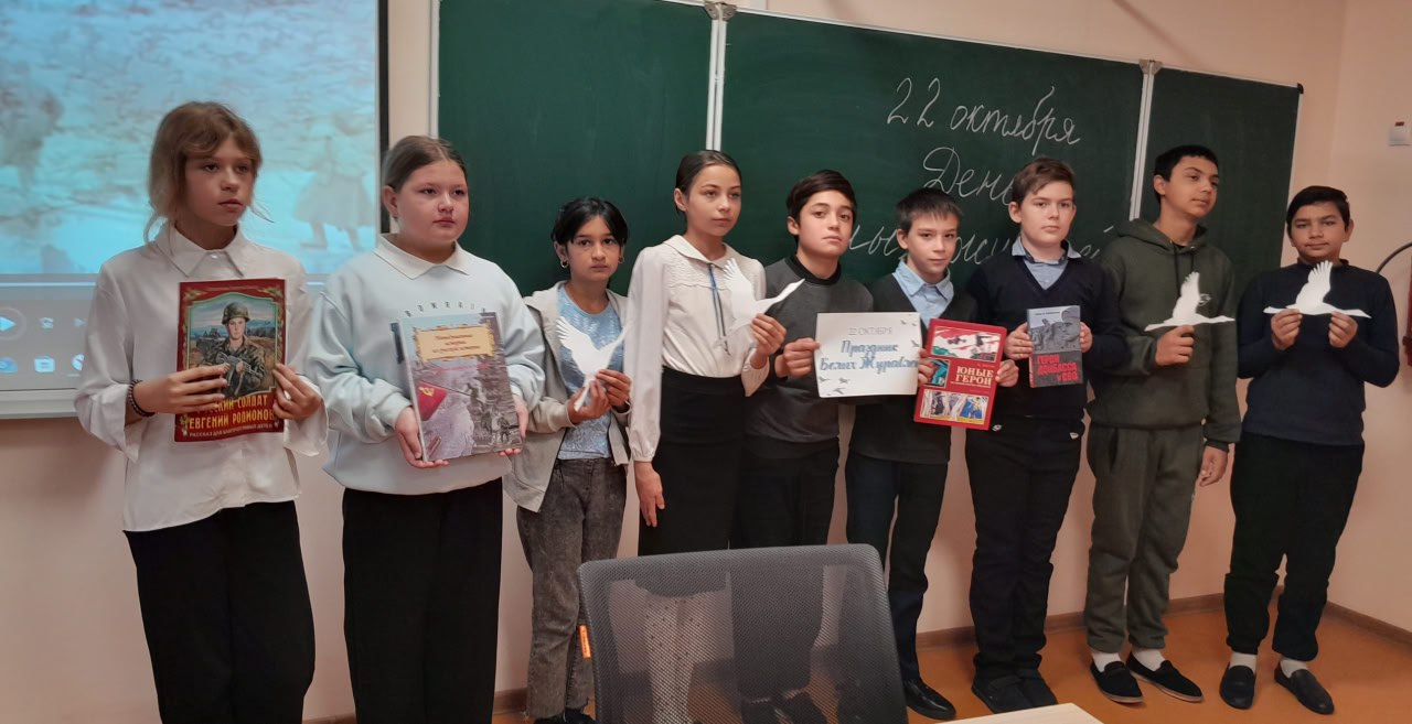 Сотрудники детской библиотеки провели для обучающихся 5, 6 классов ГБОУ "Школа №2 г.о. Дебальцево" литературный час "Летят в бессмертье журавли».