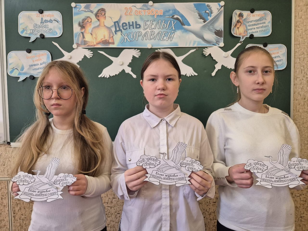 Школьники с интересом участвовали в тематических акциях, узнавая об истории возникновения этого значимого праздника. Юнармейцы поделились с одноклассниками бумажными журавликами – символом Дня Белых Журавлей.