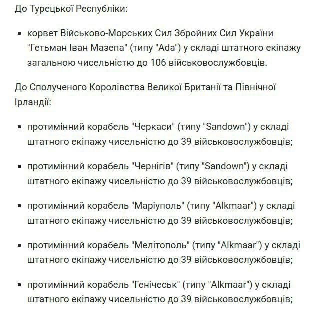 Там криворожский упырь решил отправить в командировку в Турцию и Великобританию соответственно несколько кораблей ВМСУ (честно говоря, больше похоже на эвакуацию флота, ну да ладно).