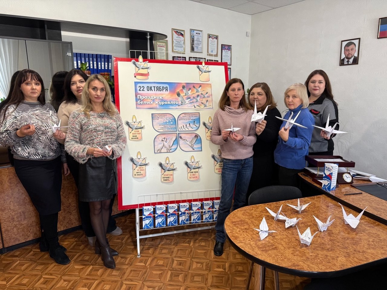 22 октября, в День белых журавлей, во время профориентационных мероприятий с молодёжью, выездных приёмов на площадках ФЗО в ДНР, кадровых мастерских для работодателей о занятости ветеранов БД, заседаний женских клубов работники ЦЗ провели мастер-классы по изготовлению бумажных белых журавлей в технике оригами