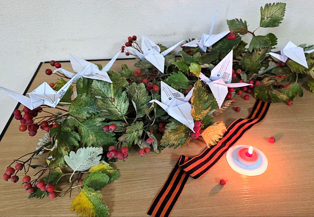 Участники могли взять готовых журавликов с собой или оставить для нужд ЦЗ. Из них в учреждениях оформлены композиции для посетителей