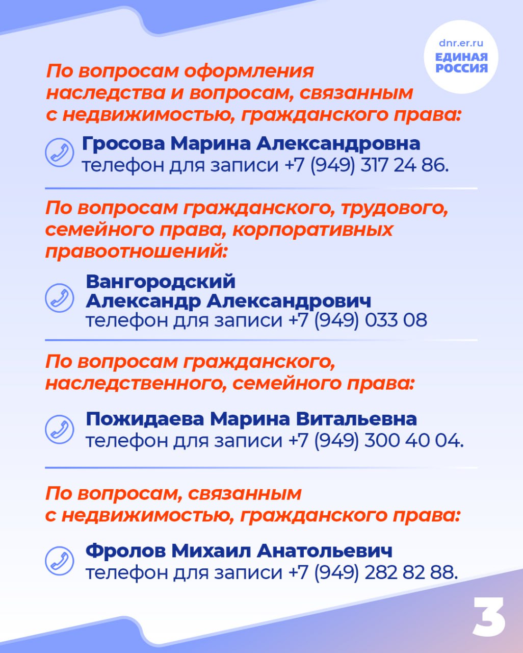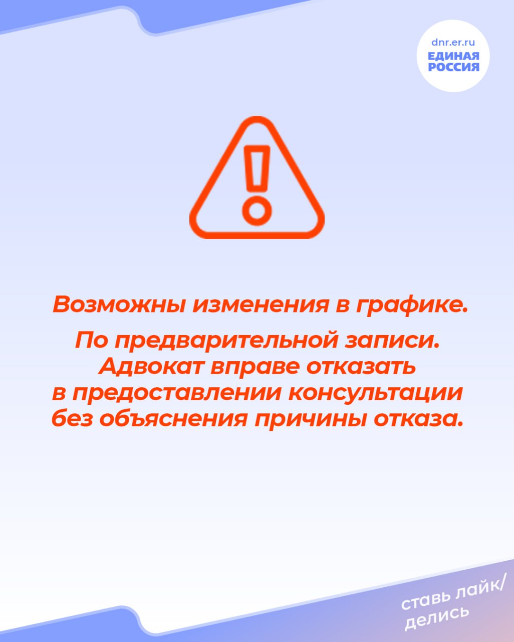 Региональная общественная приёмная Единой России в сотрудничестве с Адвокатской палатой ДНР продолжает оказывать всестороннюю юридическую помощь жителям ДНР.