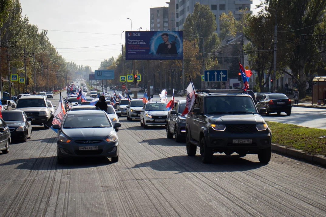 Команда Региональной общественной организации «Народная дружина» организовала масштабный автопробег, приуроченный ко Дню флага Донецкой Народной Республики.