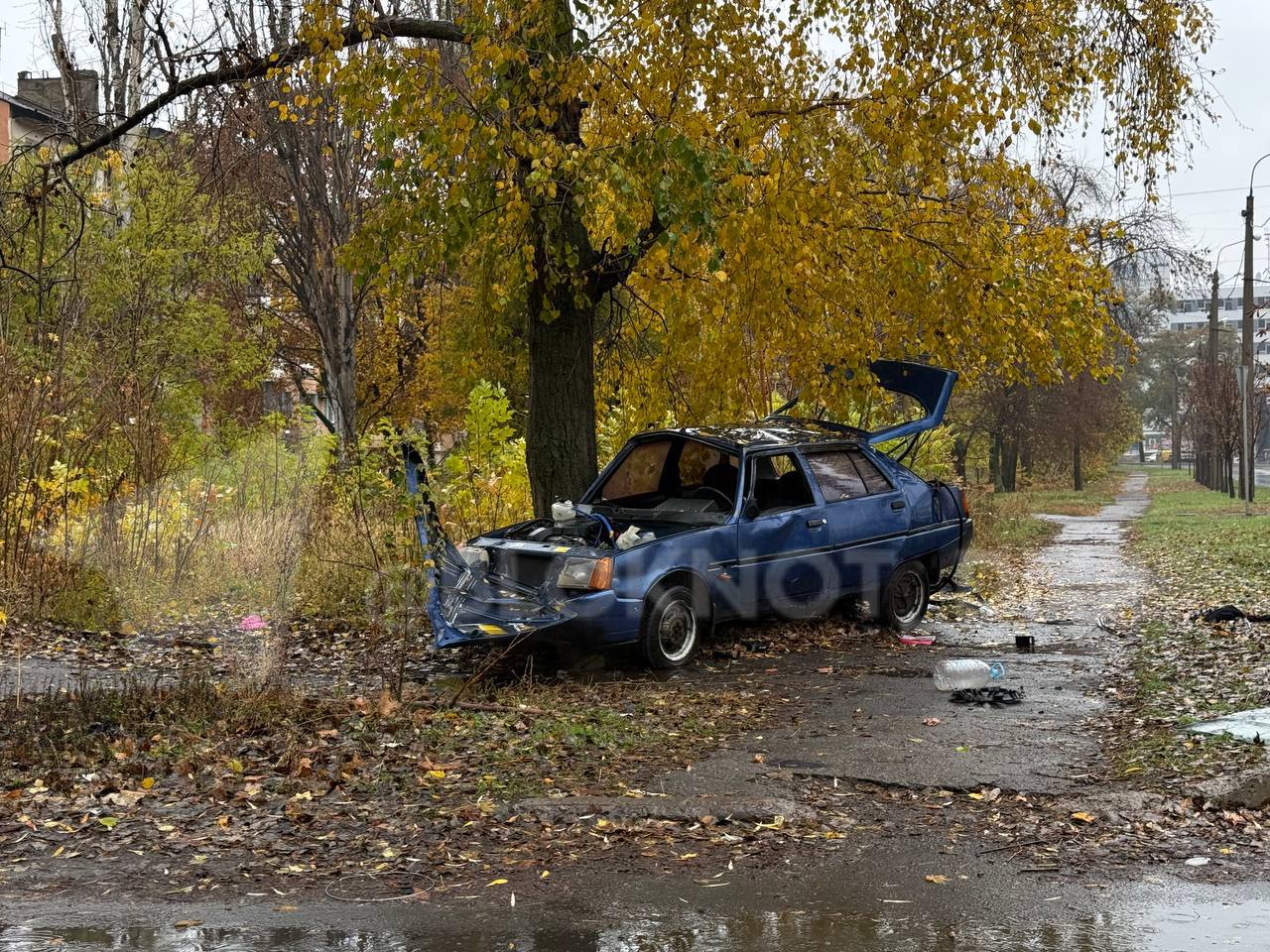 Разбитая в труху «Славута» стоит в районе Топаза в Донецке