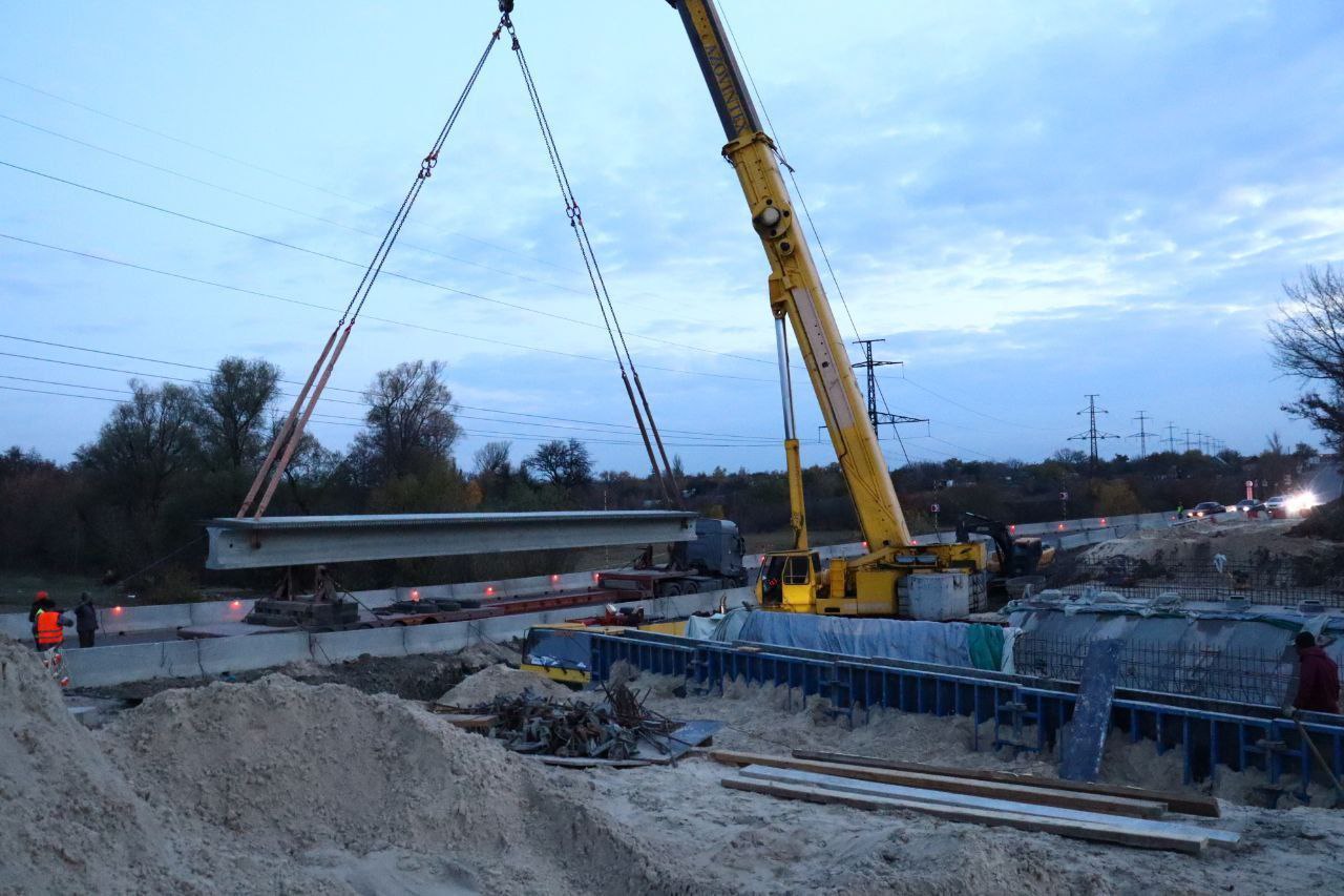 Специалисты подрядной организации ООО "Мостовик" в рамках государственного контракта с ГКУ ДНР "Служба автомобильных дорог Донбасса" на текущей неделе произвели монтаж опорных частей и шести балок пролетного строения.
