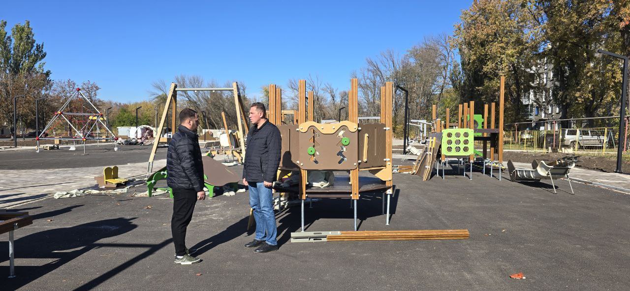 В Докучаевске идут работы по благоустройству нового места притяжения жителей.