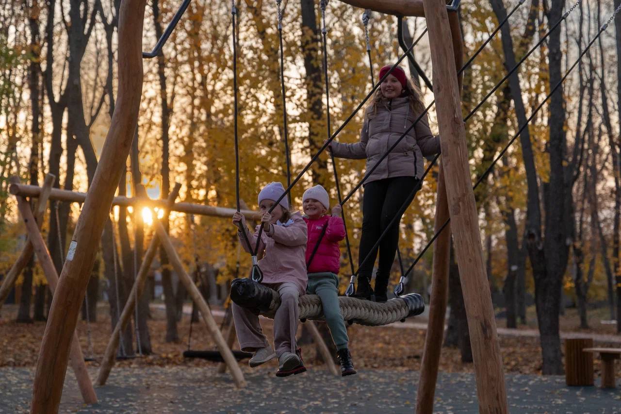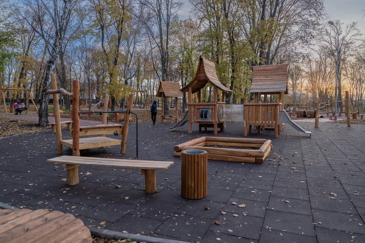 Территория площадью почти 13 тысяч квадратных метров приобрела новый облик: свыше 6 тысяч квадратных метров занимают дорожки и тротуары, более 5,5 тысяч — зелёные зоны. В парке появились четыре детские площадки в форме круглых «островков», воркаут-зона с 16 спортивными модулями и безопасным покрытием, зеркальный лабиринт-спираль, амфитеатр с трибунами и круглый фонтан на центральной аллее.