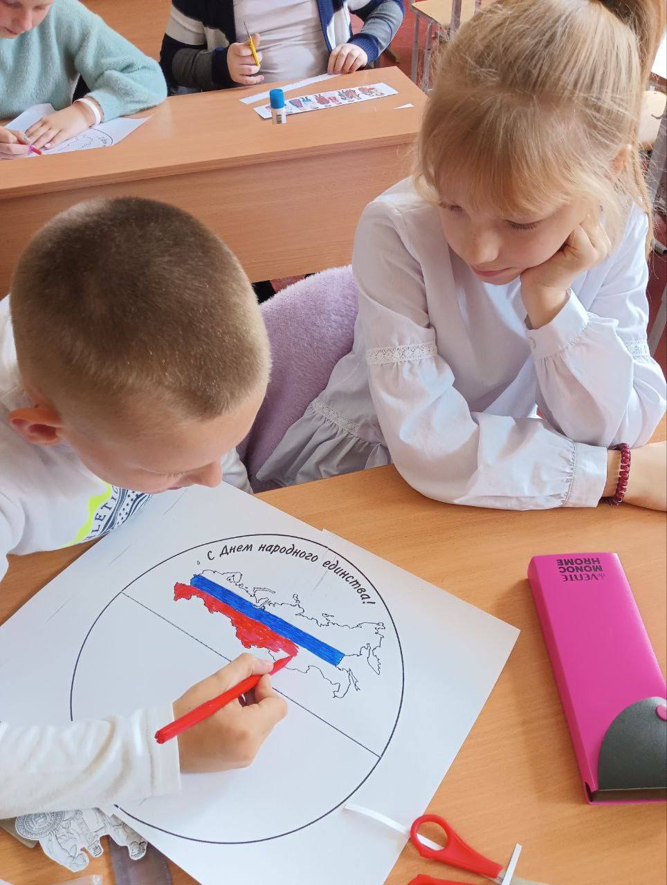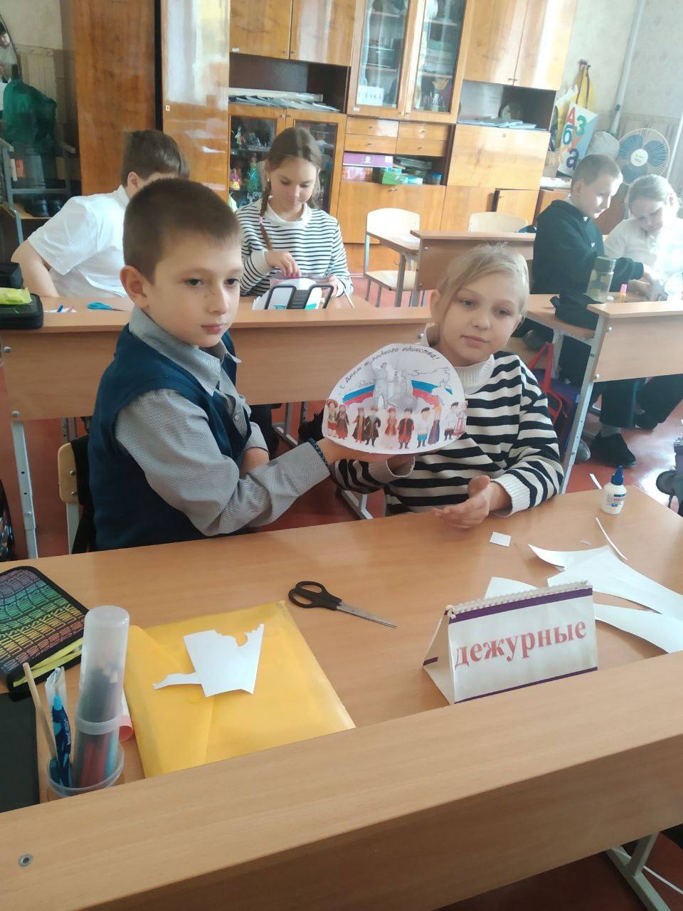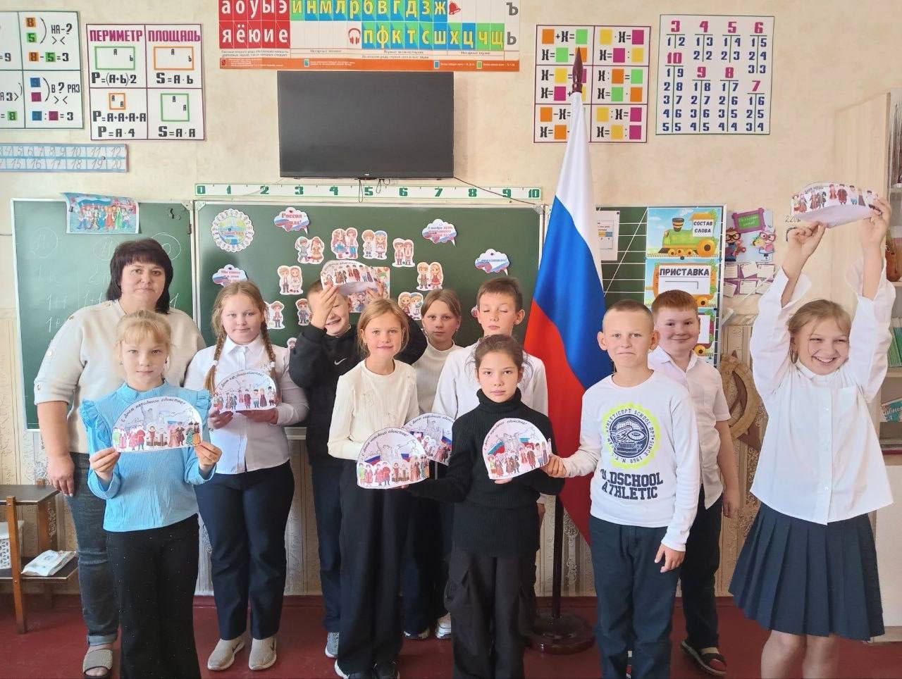 В преддверии праздника Дня народного единства 1 ноября в библиотеке-филиале №1 для ребят 4 класса прошло этнографическое путешествие «Все мы разные – все мы равные». Библиотекарями была представлена информация о значении и истории возникновения праздника, его традициях. После обучающиеся разделились на три команды и продолжили мероприятие соревнованием друг с другом в трех раундах: «Правовой», Символы России» и «Россия – многонациональное государство». В творческом конкурсе на изготовление поделки ребята проявили свою фантазию и навыки, создавая поделки ко Дню народного единства, дети учились уважать традиции и культуру разных народов, ценить и уважать богатство культурного наследия своей страны.
