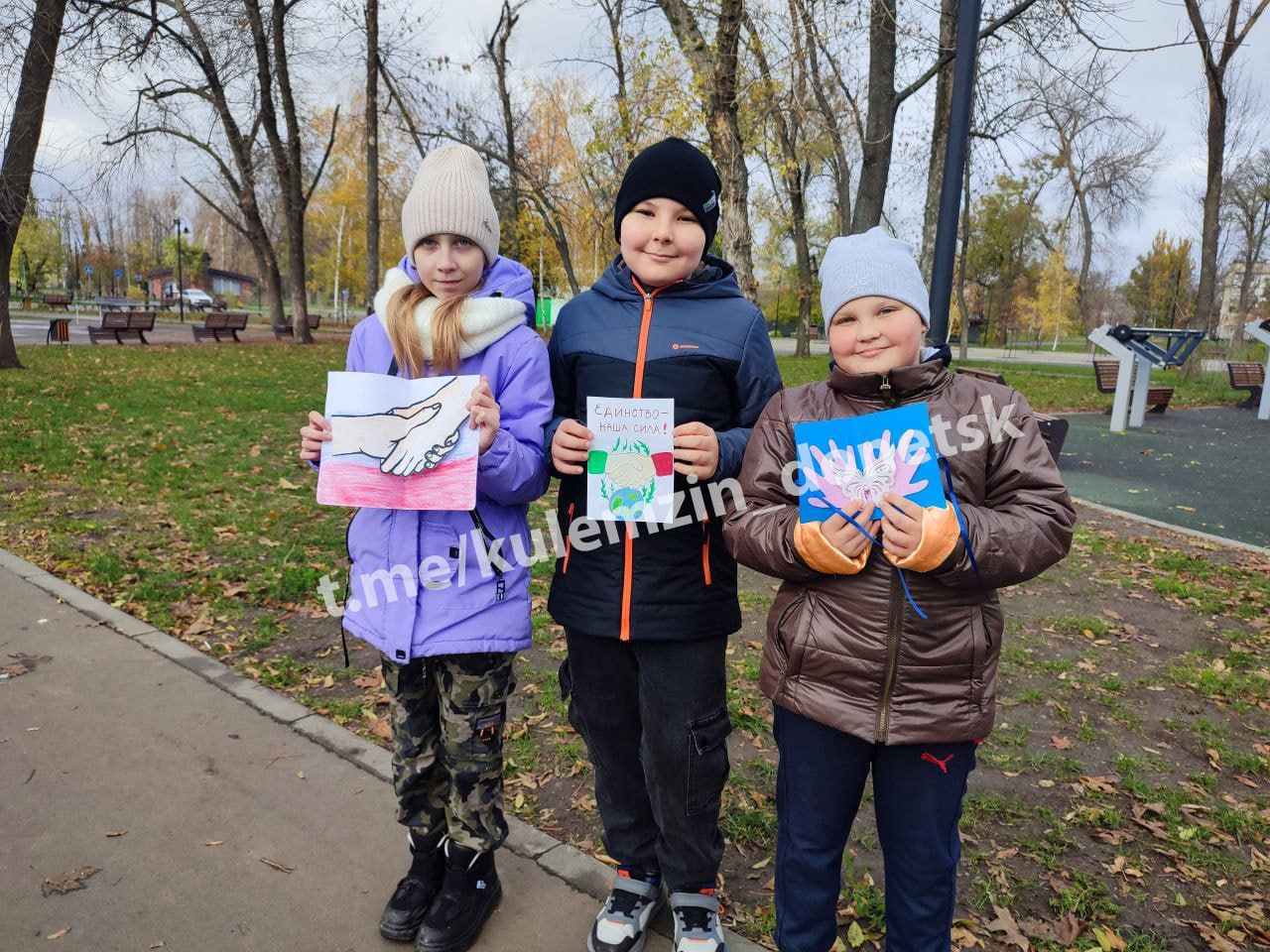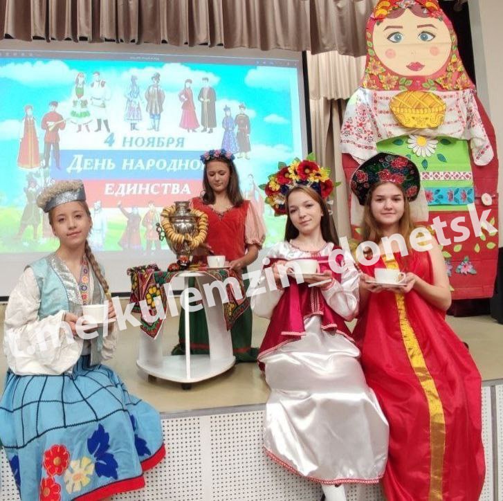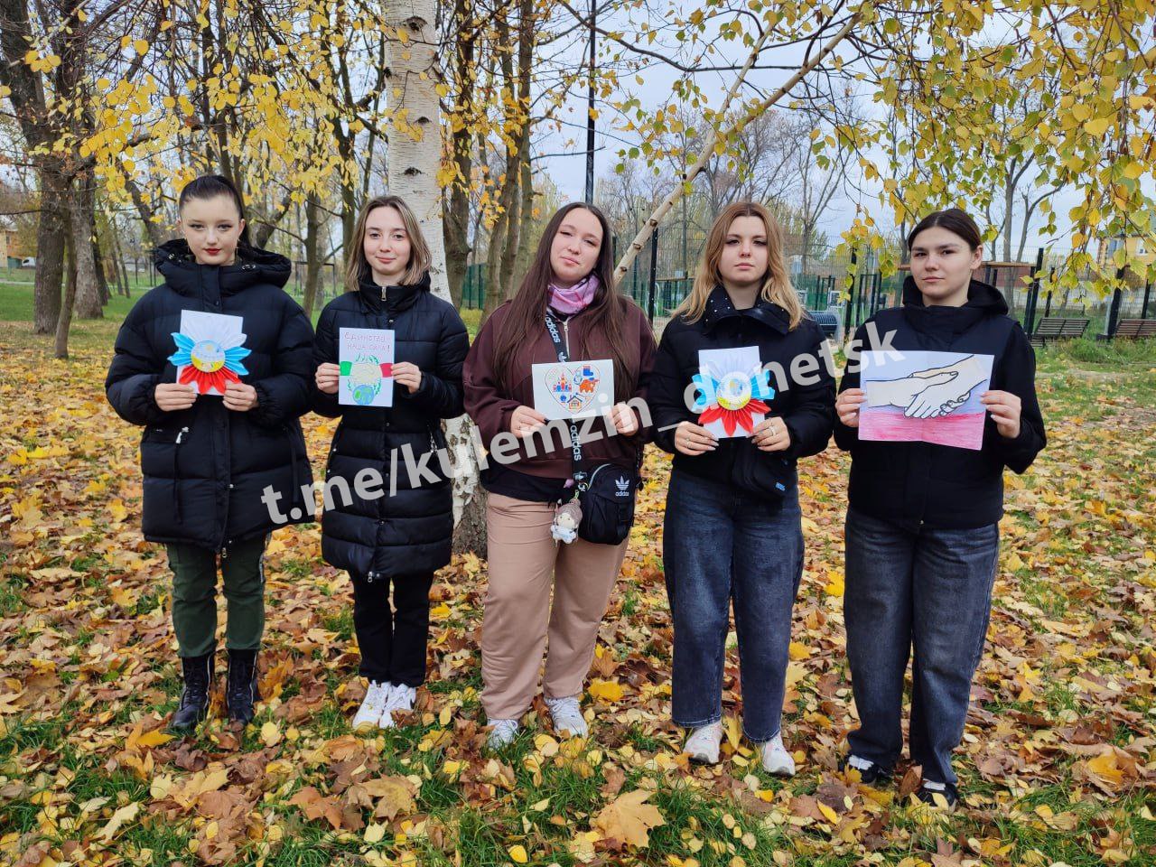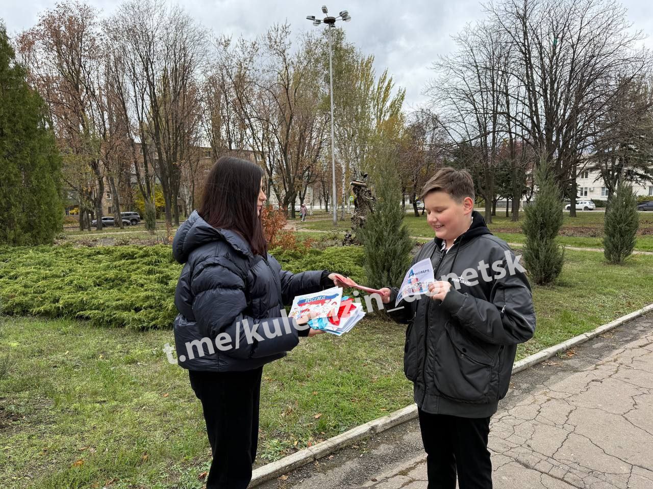 Ко Дню народного единства в Донецке прошли мероприятия, акции, лекции и познавательные часы. Дончанам раздавали открытки с изображением рукопожатия, как символа единства и сплоченности народа России.