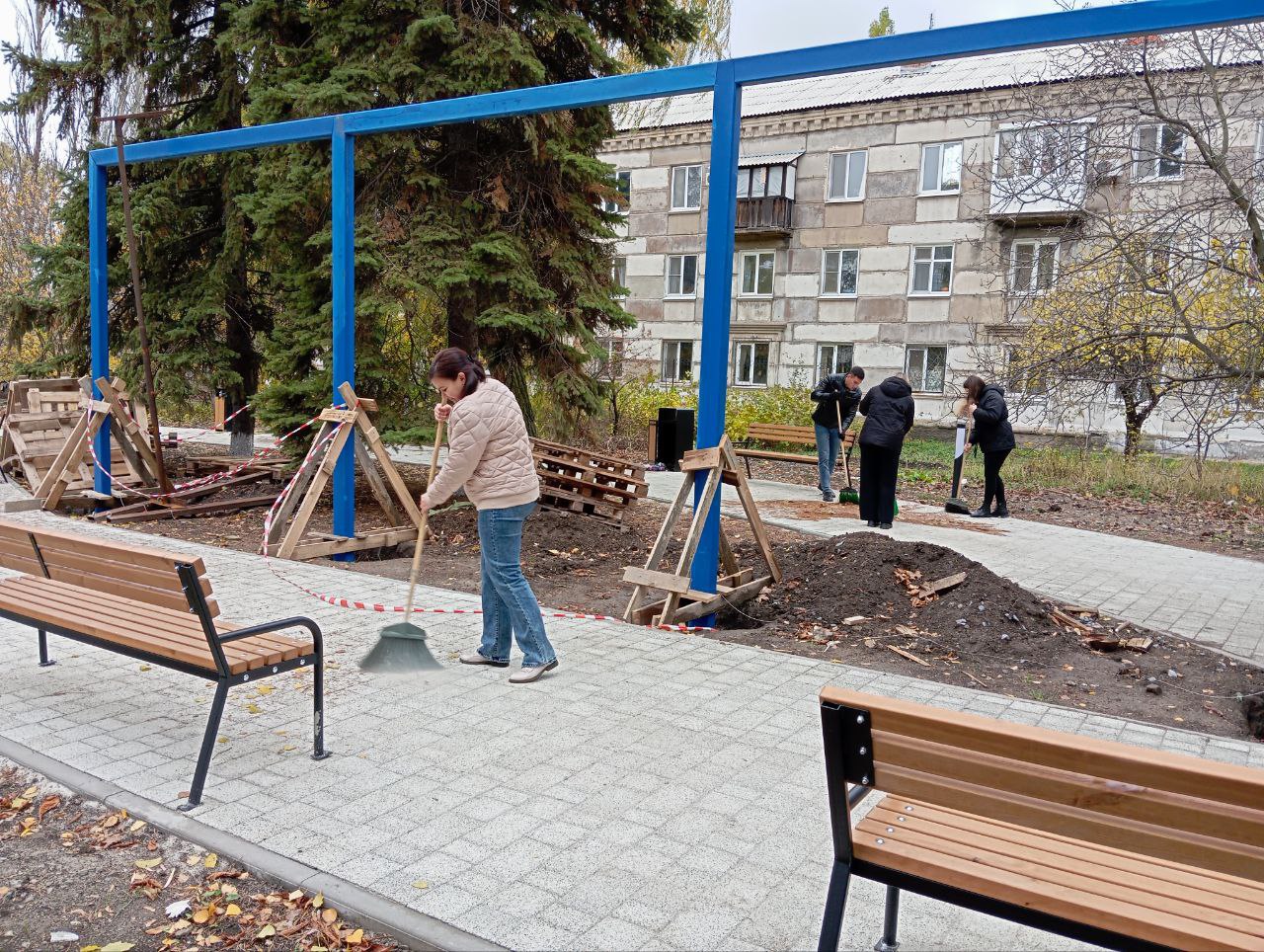 Сотрудники управления по обеспечению деятельности территорий администрации городского округа Енакиево приняли участие в общегородском субботнике.