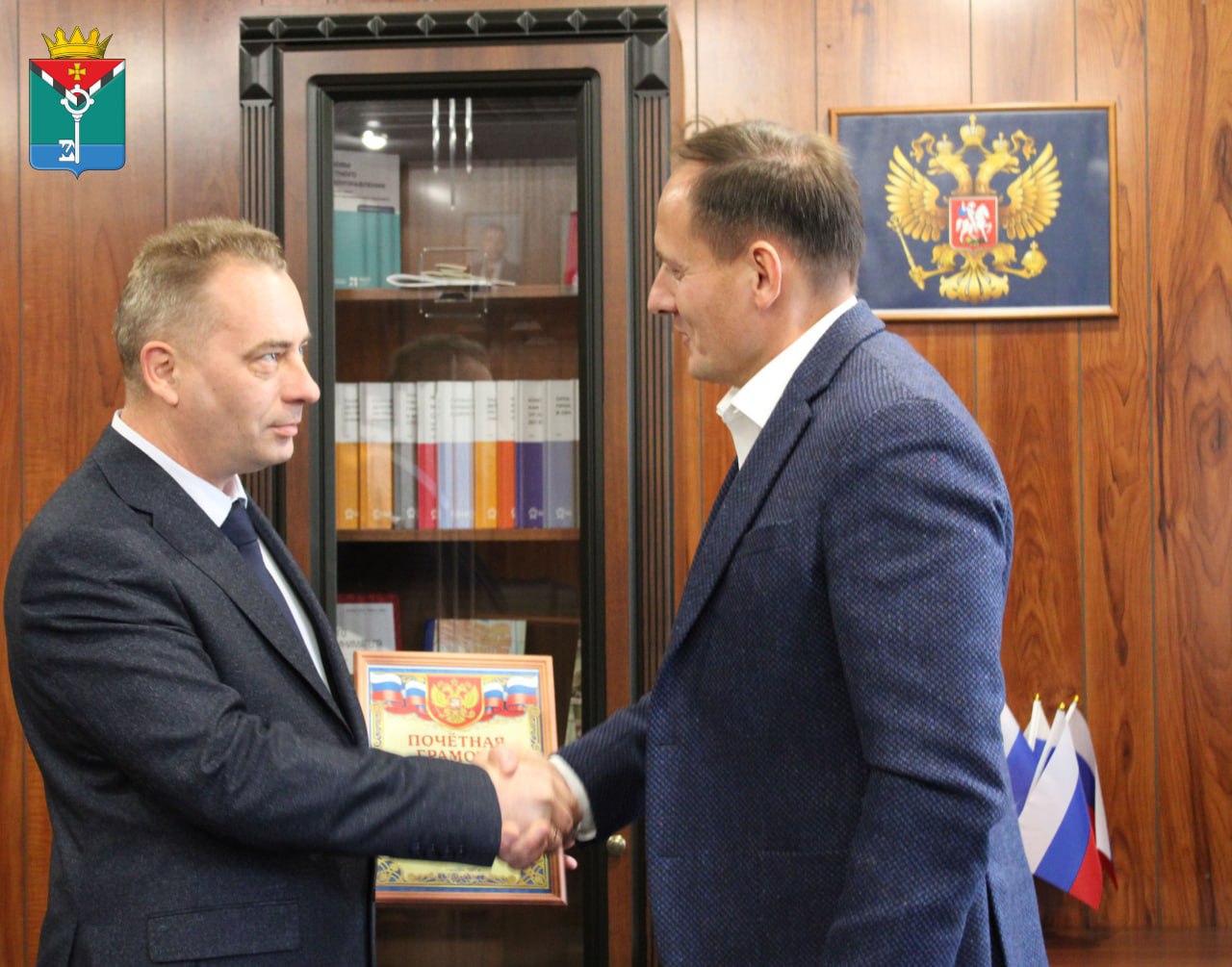 В преддверии Дня народного единства наградил Почетными грамотами и вручил благодарности депутатам и сотрудникам администрации, тем кто принимал непосредственное участие в создании системы местного самоуправления в Краснолиманском муниципальном округе.
